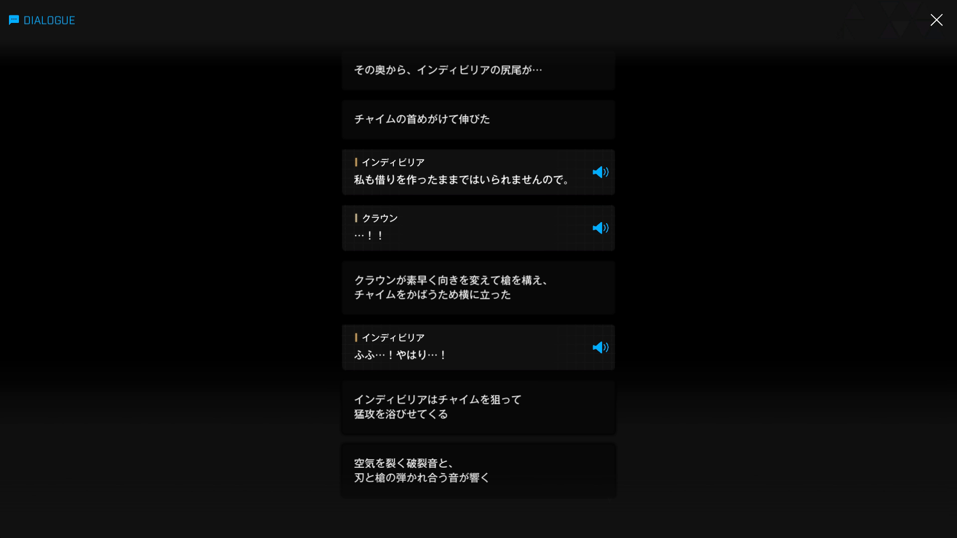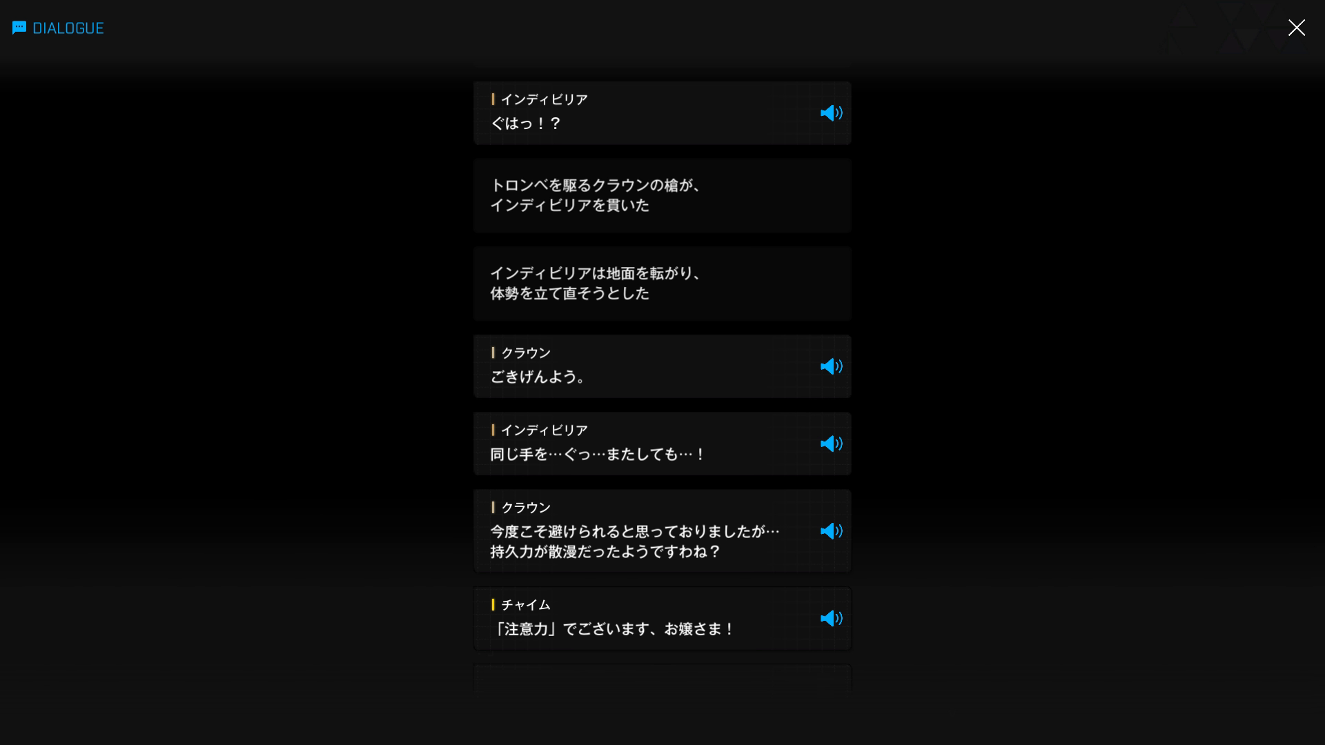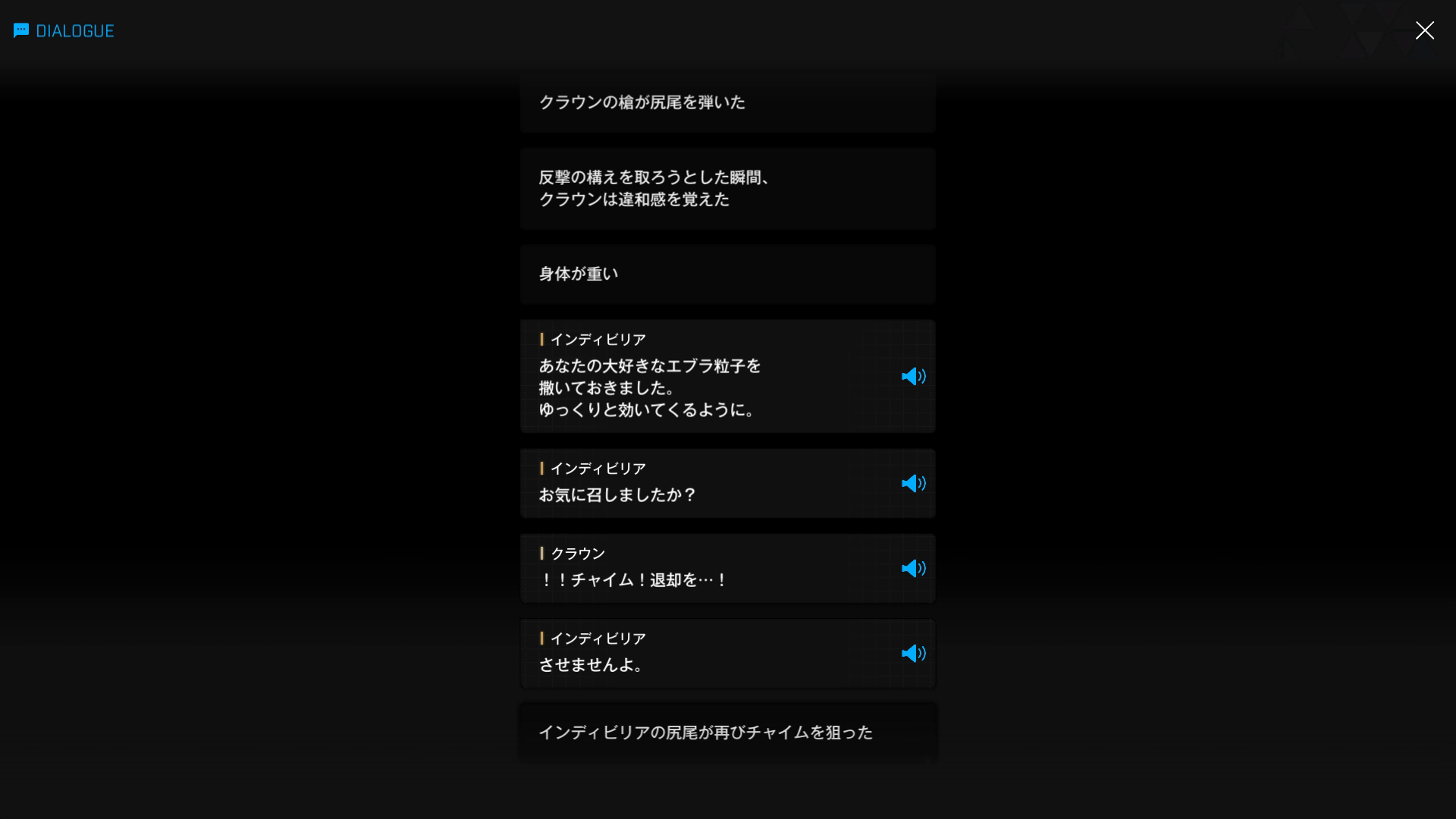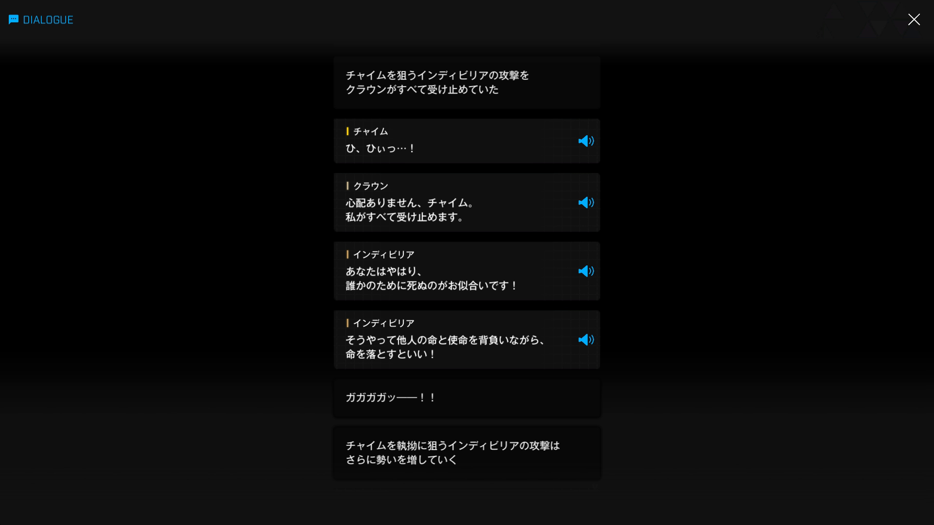 ・イベント『LAST KINGDOM』で自分に止めを刺したチャイムを標的にすることで、クラウンを防戦一方の展開に持ち込む → クラウン側からすれば、彼女を討ち取るどころか、逆に足止め & 引き付けられた状態に(『天空を彩る翼:B』より)