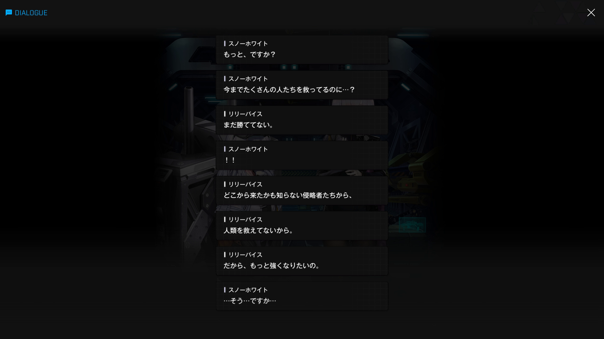 ・『素敵な別れ:A』でドロシーを代理リーダーに抜擢したあと、リリス自らゴッデス指揮官へ「短期決戦を目的として作られたボディだから、寿命が長いとは思っていませんでしたが、いざこうなってみると⋯⋯レッドフードの気持ちが分かる気がします」と『ちょっとした愚痴』発言をしている