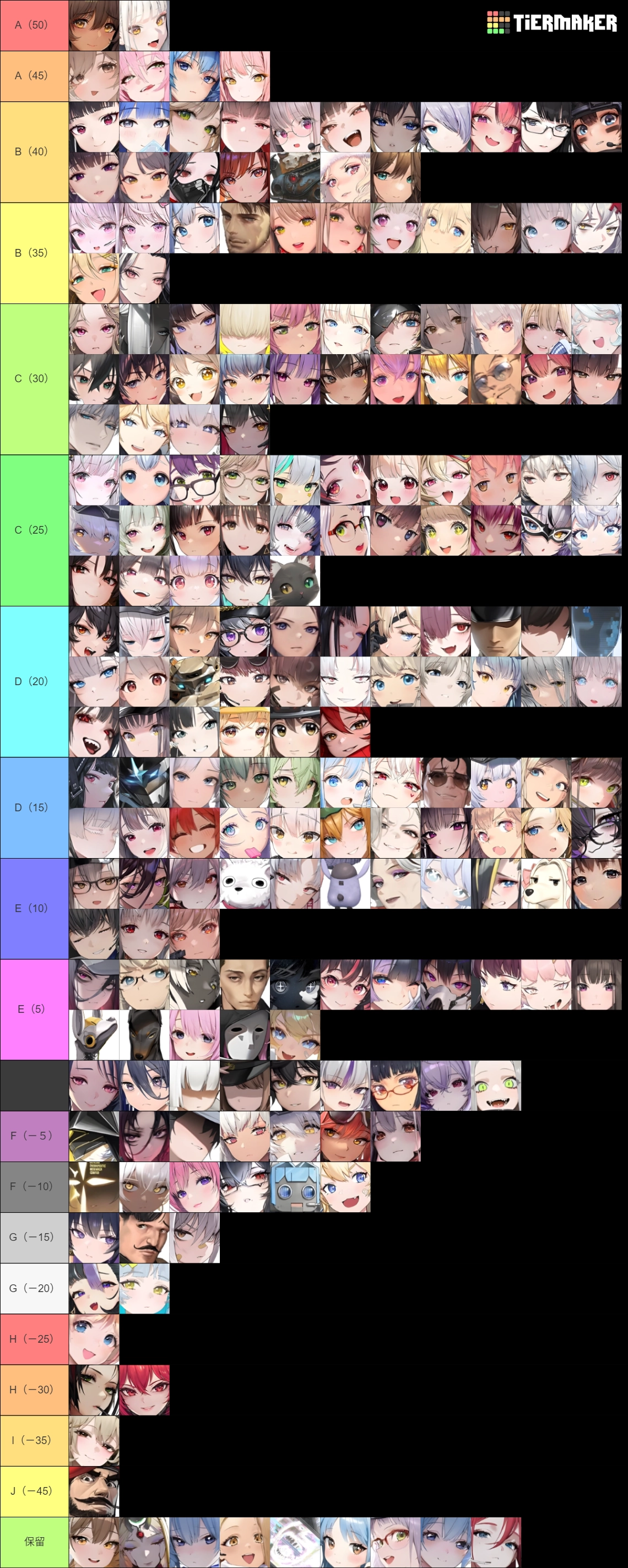・最高を A ランク(+40~+50点)とし、そこから10点刻みで最低 J ランク(-40~-50点)に振り分けています。
