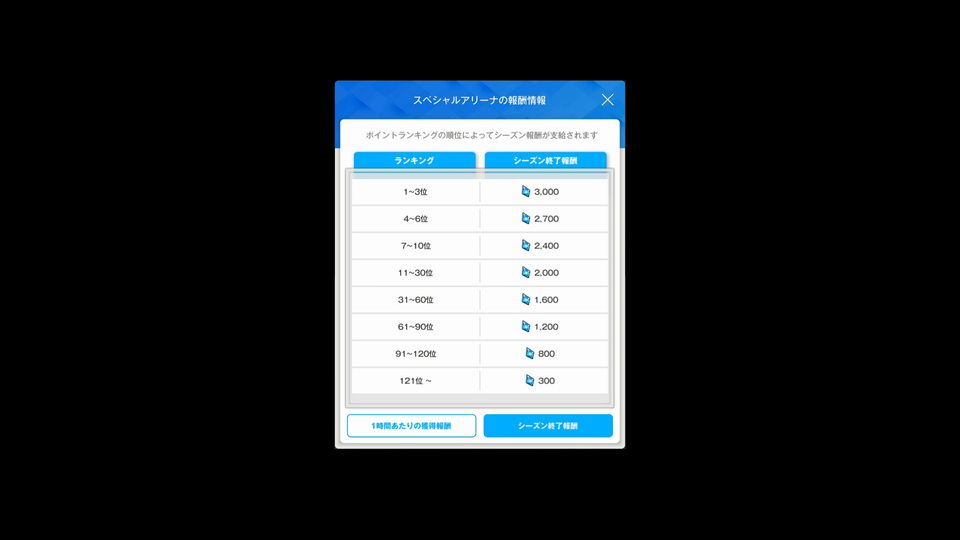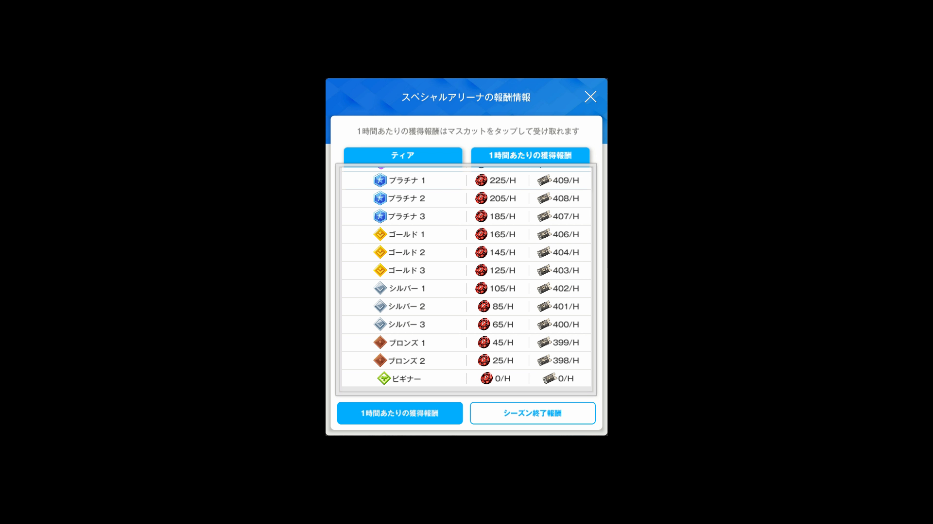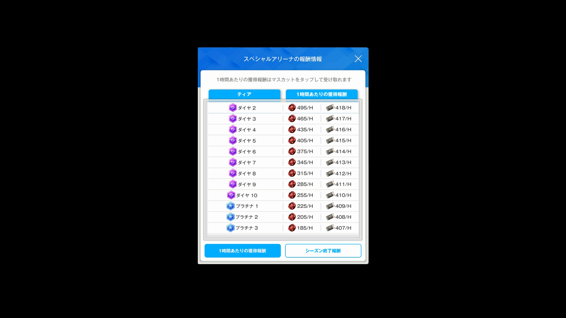・1時間あたり & シーズン終了時のランキング報酬は、以下SSのとおり → 前者が1~3枚目 & 後者が4枚目