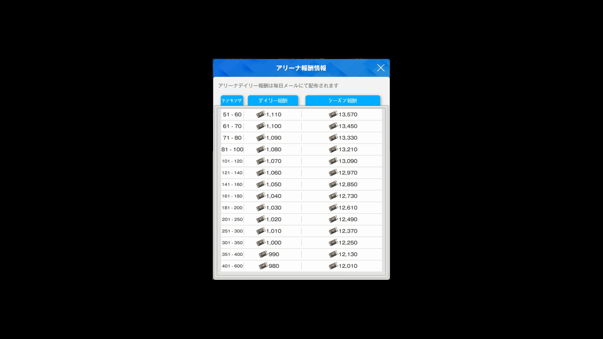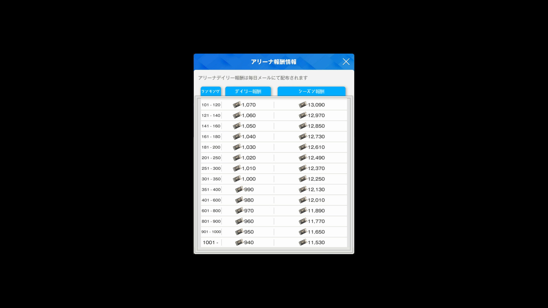 ・1日あたり(シーズン終了時)のランキング報酬は、以下SSのとおり