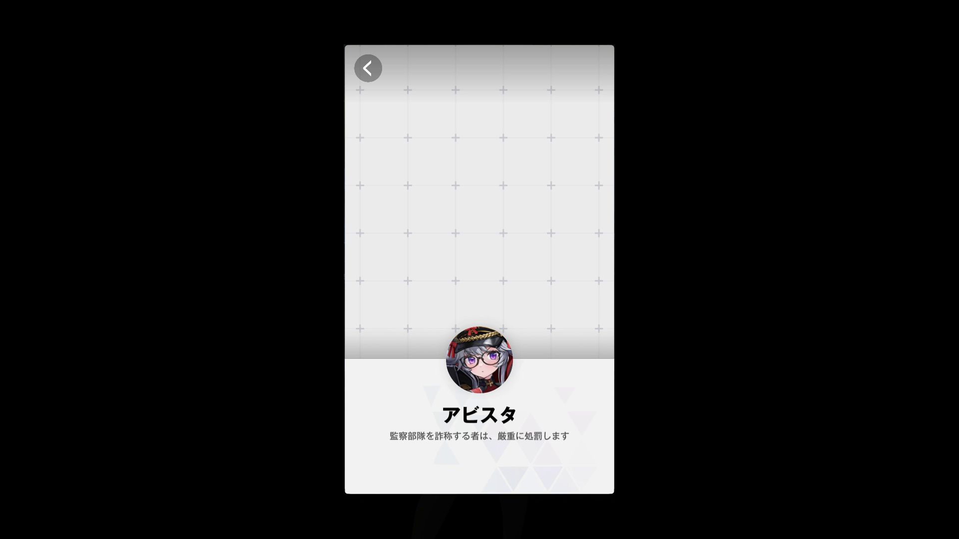 ・下記のアビスタと共に、オーバーシアー部隊に所属しており、自分のことを「メガネ美少女」と語る → 最初から相手を疑いの眼差しで見る & 偏見を持つことを信条?としており、もし座右の銘なるものがあれば、おそらく「叩けばホコリが出ないものはない」という感じだろう(CHAPTER.36『監察部隊:A』より)
