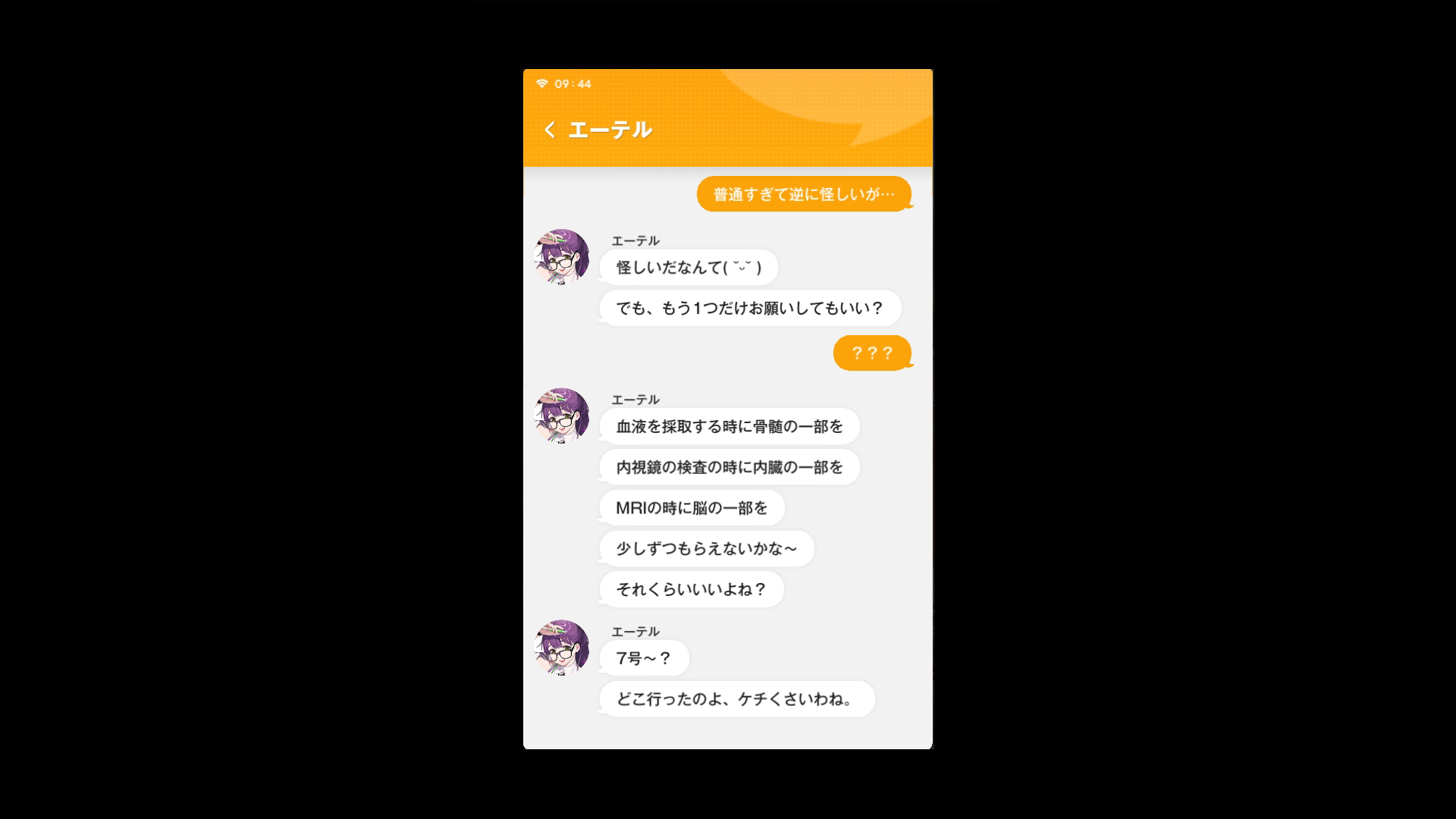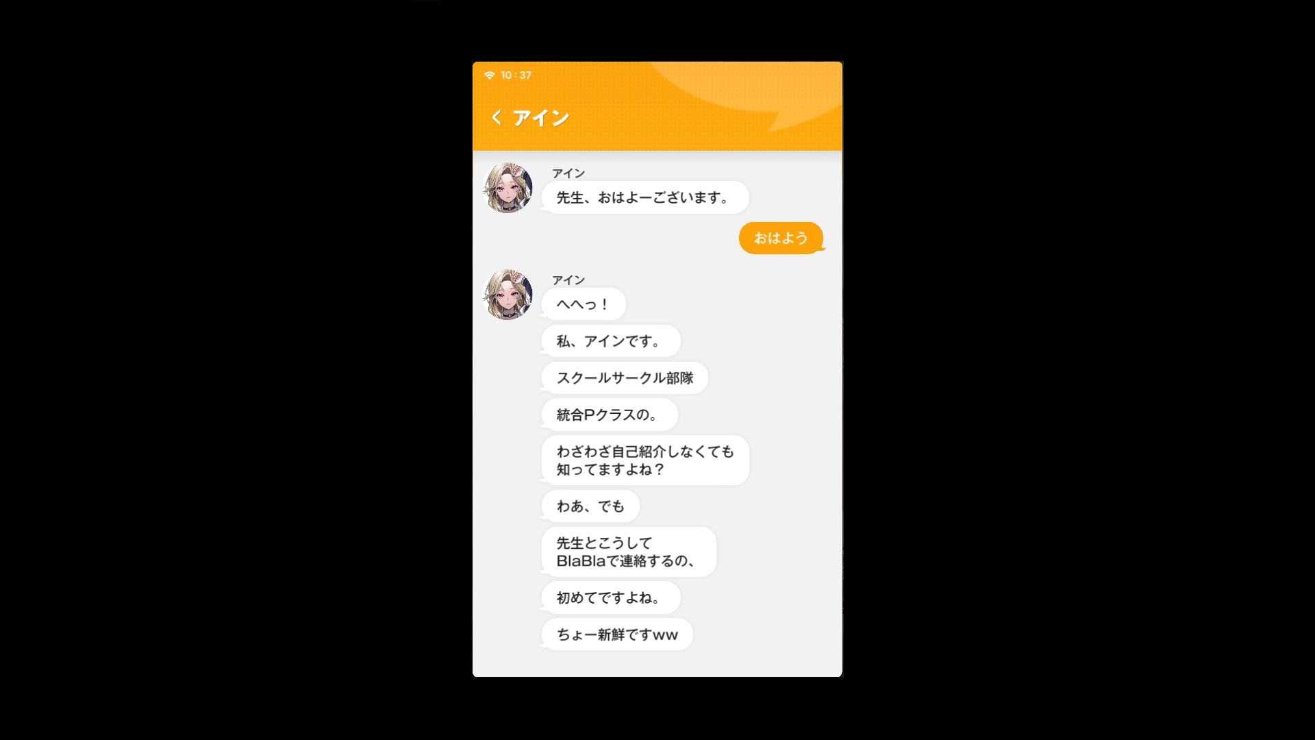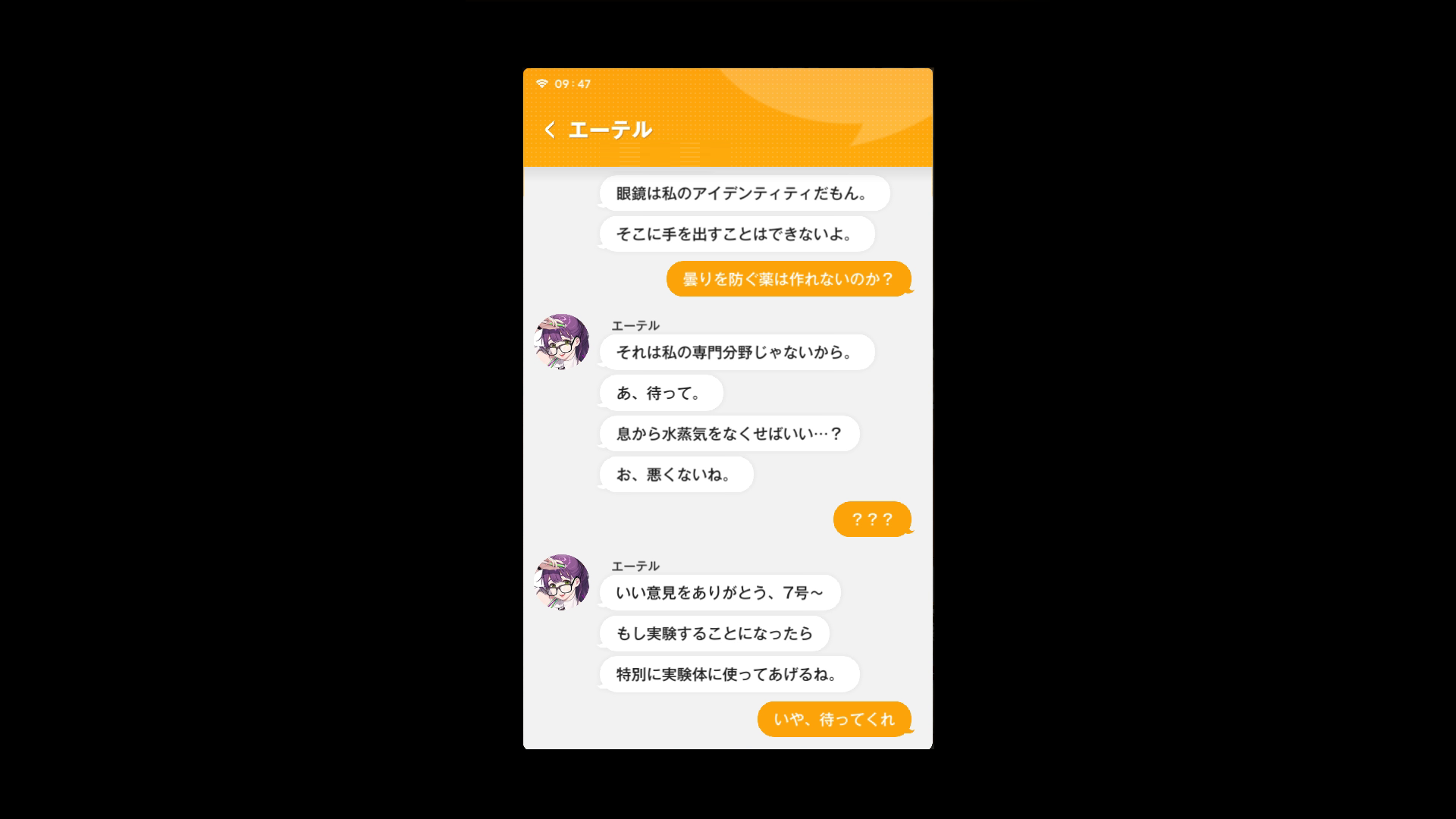 ・主人公の連絡先しか知らない彼女に対し、メッセージ返信ゲームで勝負するアニスもどうかと思うが、彼の機転で見事勝利を収める → ちなみに、これ以外のblabla内容は、全て彼女のエピソードの後日談に関するもの(N102 blablaより)