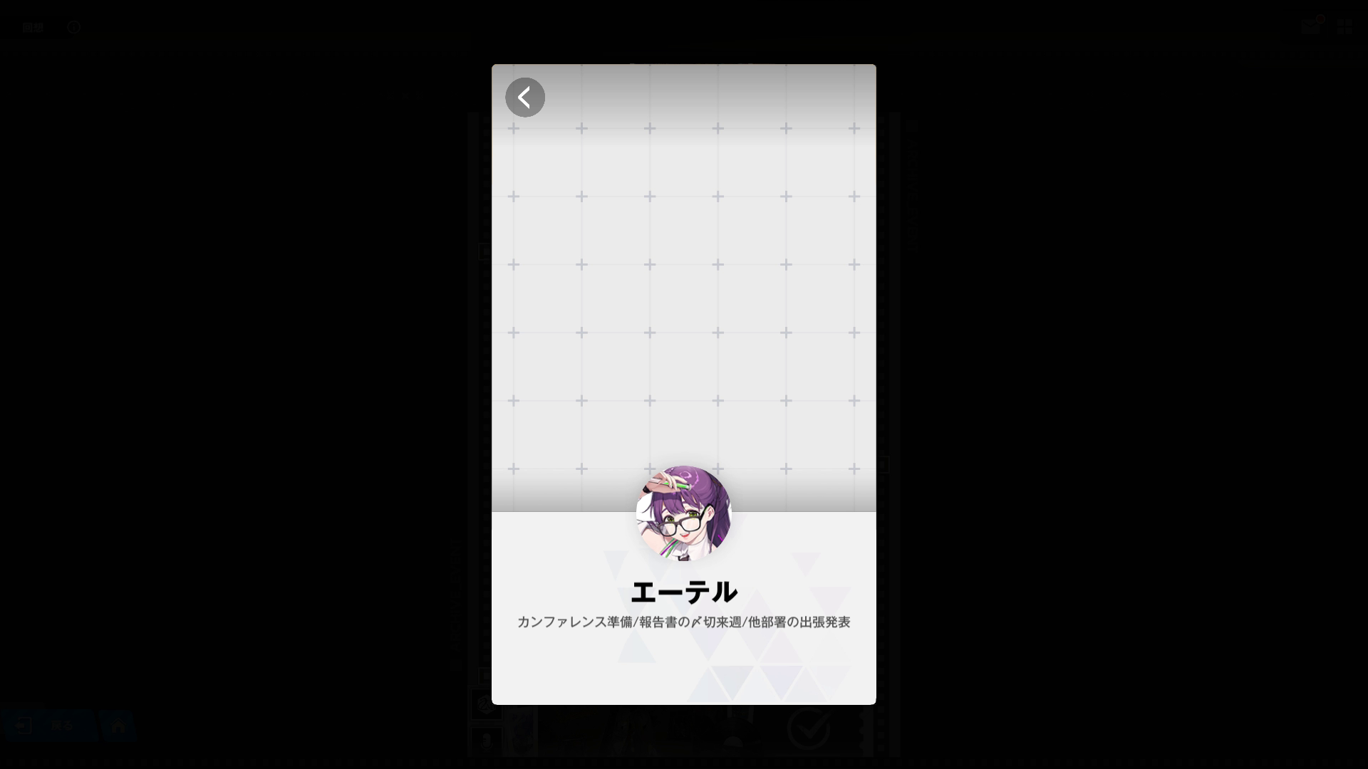 ・いつも頑張っているユルハに「いつも感謝してるし悪いなと思っている」ものの、何かプレゼントをする際は「休みよりもお酒」がまだマシ → アドミも「お酒に頼るのはいい選択ではありませんが、彼女には最も身近な逃げ場なのでしょう」と分析している(アドミ面談:12より)