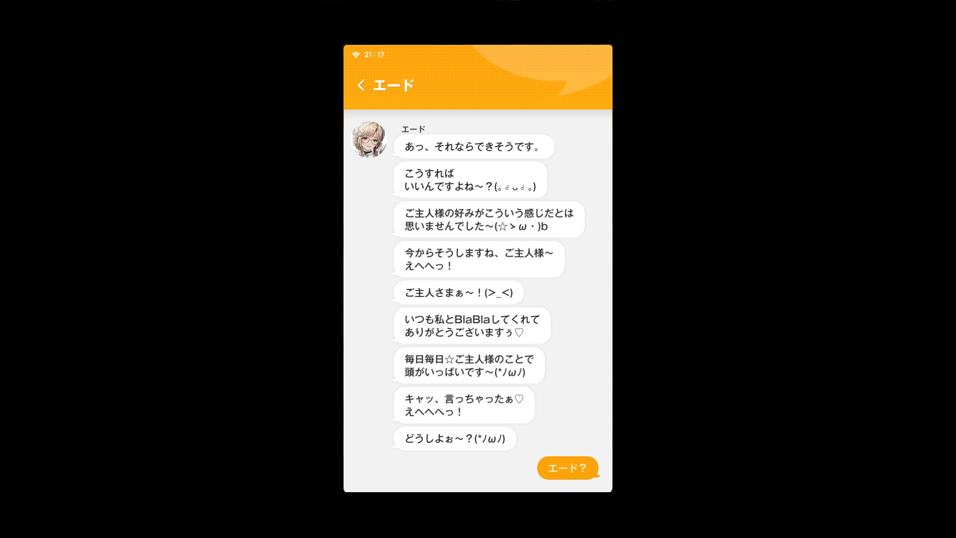 ・以下SSは、決して思考転換直後のエードではない → 主人公から「口調がA.I.みたい & ソーダのような話し方ができるか?」と言われたため、わざとそのように振舞った超貴重なシーン(エードblablaより)
