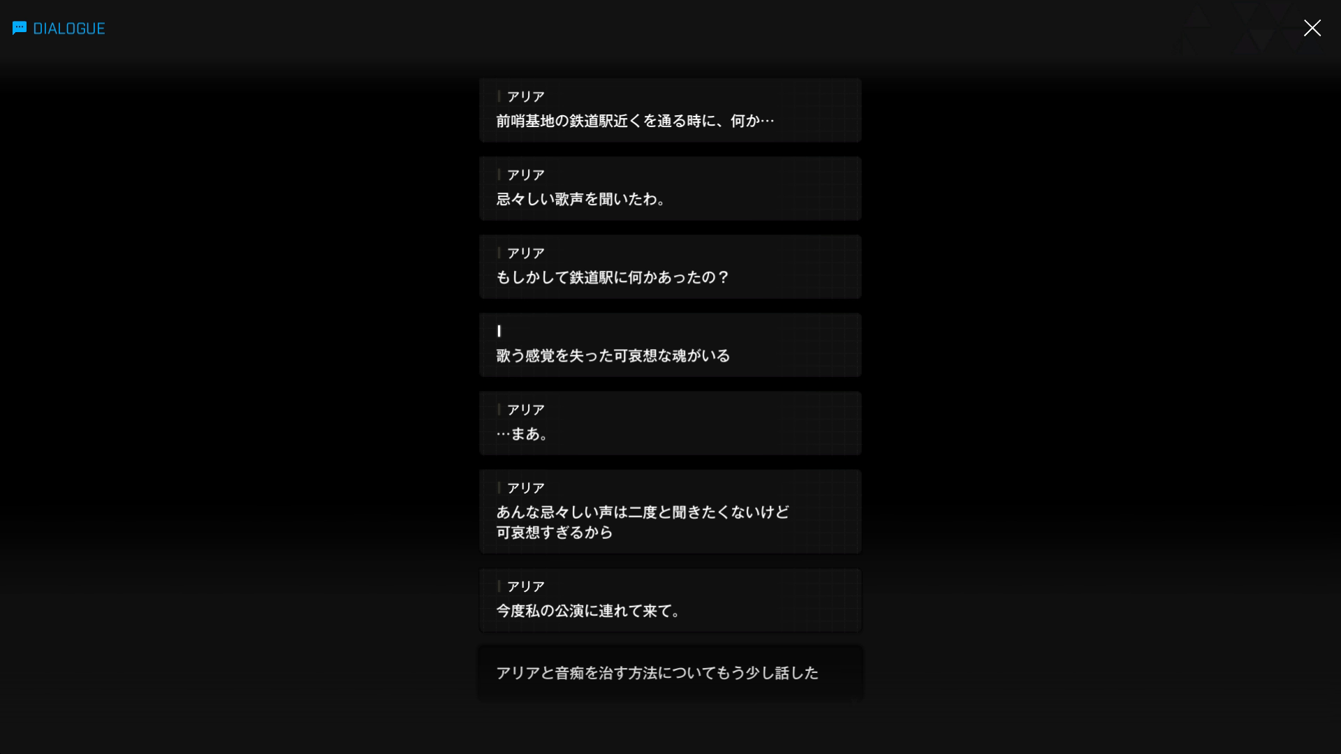 ・彼女からすれば、某鉄道部隊リーダーの歌は以下SSのように感じるらしい(アリア面談:04より)
