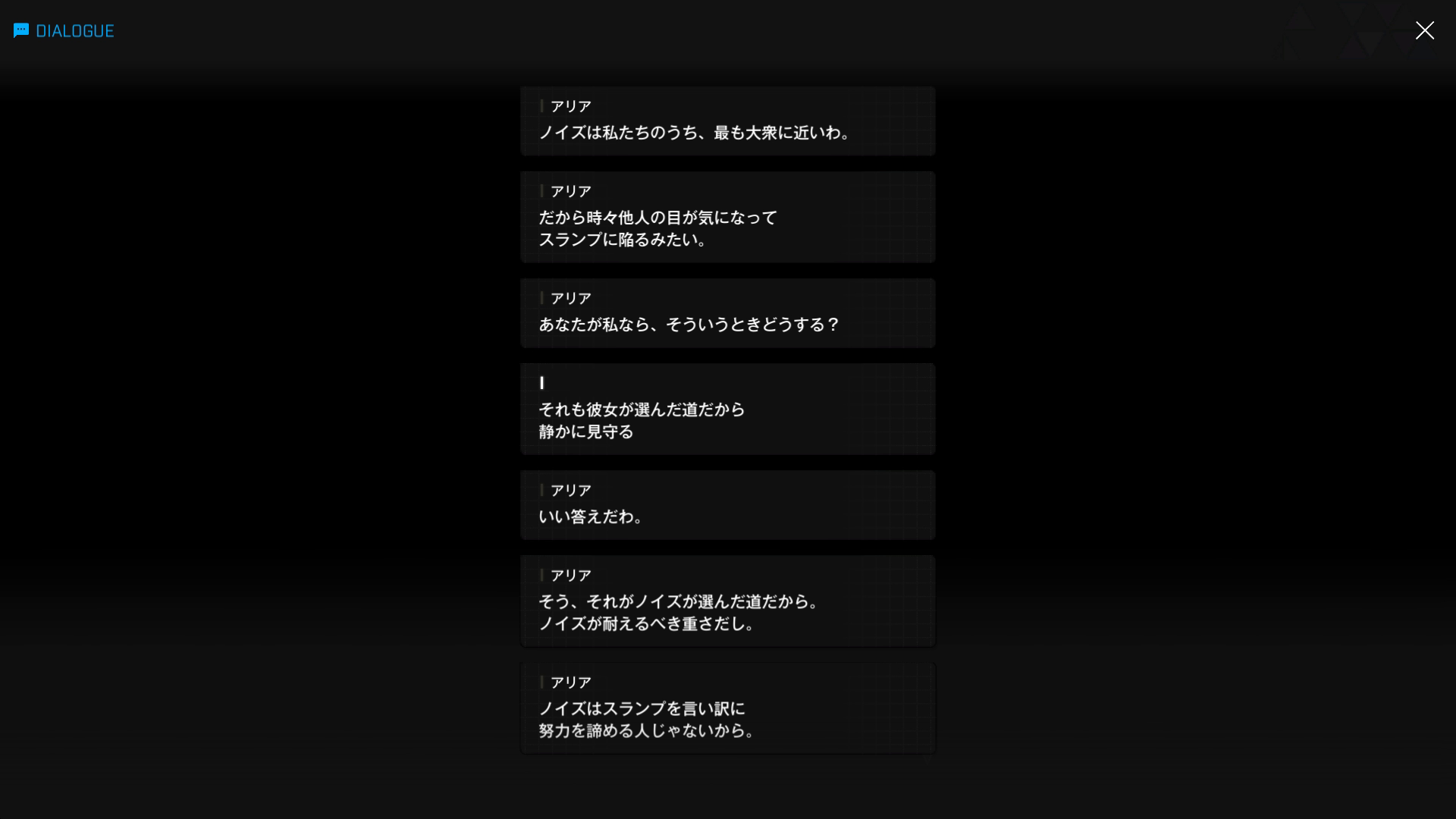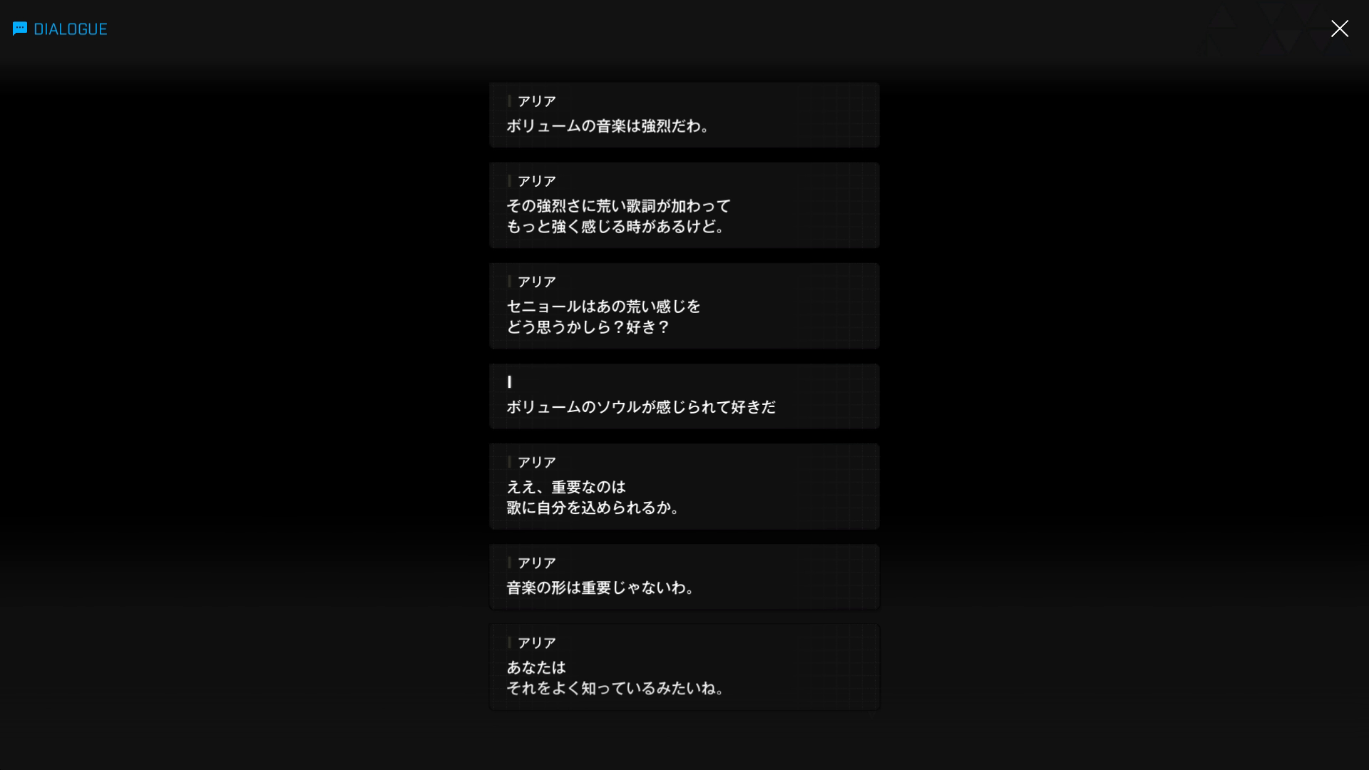・以下SSのように、上記のボリューム同様、ノイズについても彼女なりの意見を述べている(アリア面談:08より)