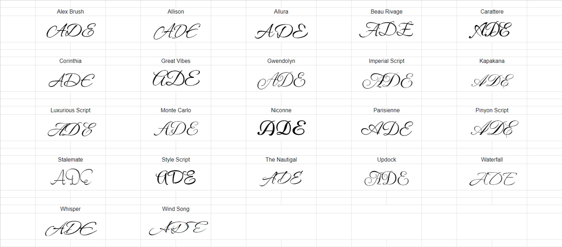 『もし彼女がサインしたら、丁寧かつ優雅な筆記体になるだろう』と想定 & 独断+偏見で20個ほど厳選した結果、おおよそ以下SSのような雰囲気になる → ちなみに、彼女の名前『ADE』の上に書いてある文字は使用フォント(諸兄の性癖同様、字体の好みも千差万別だと思うが、管理人的にはぜひ右上の『Carattere』で一発⋯⋯もとい一筆お願いしたいところ)