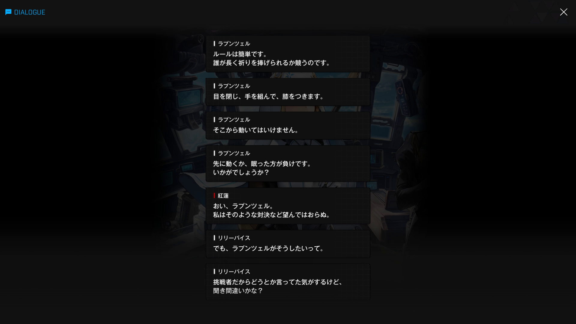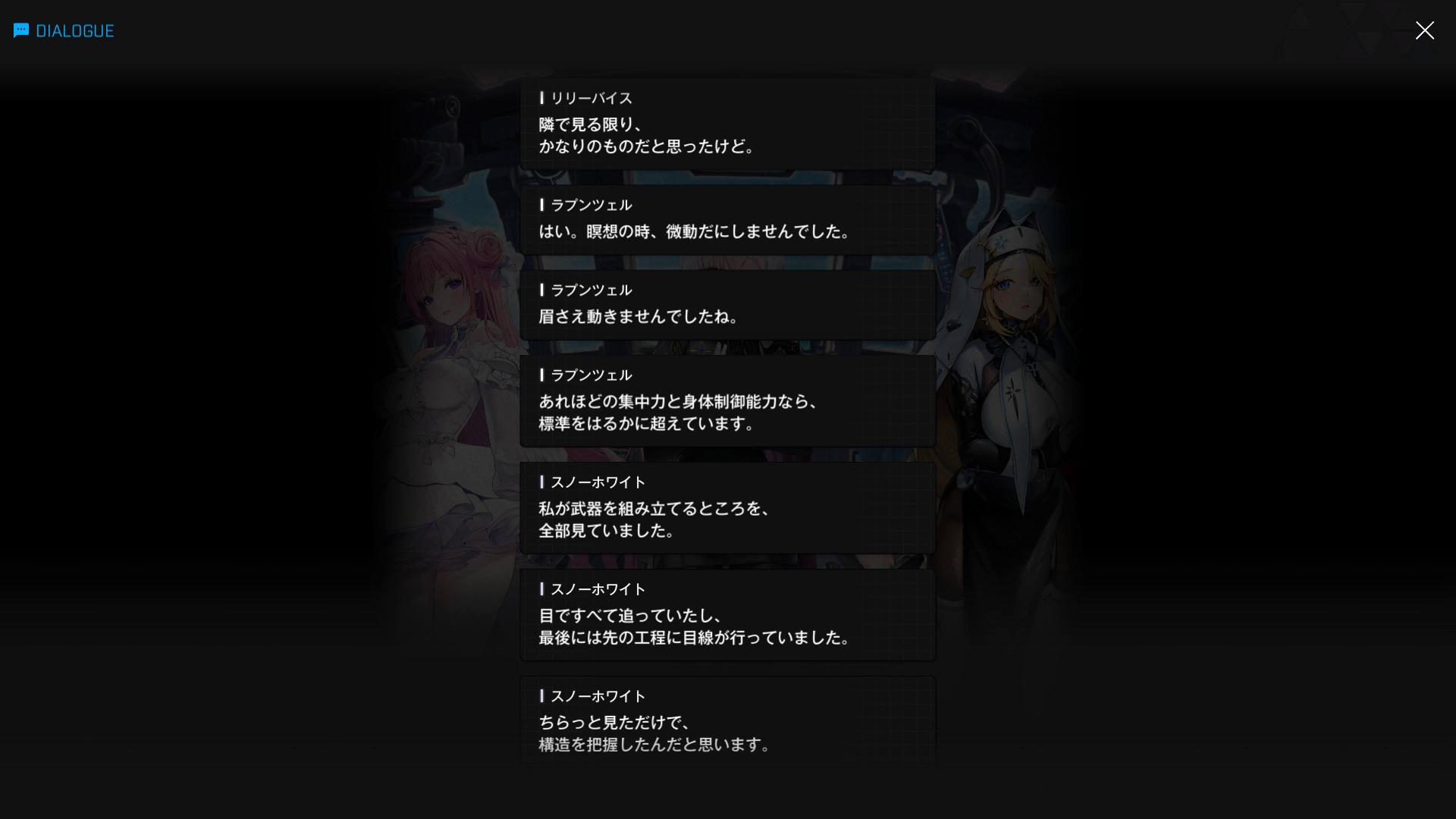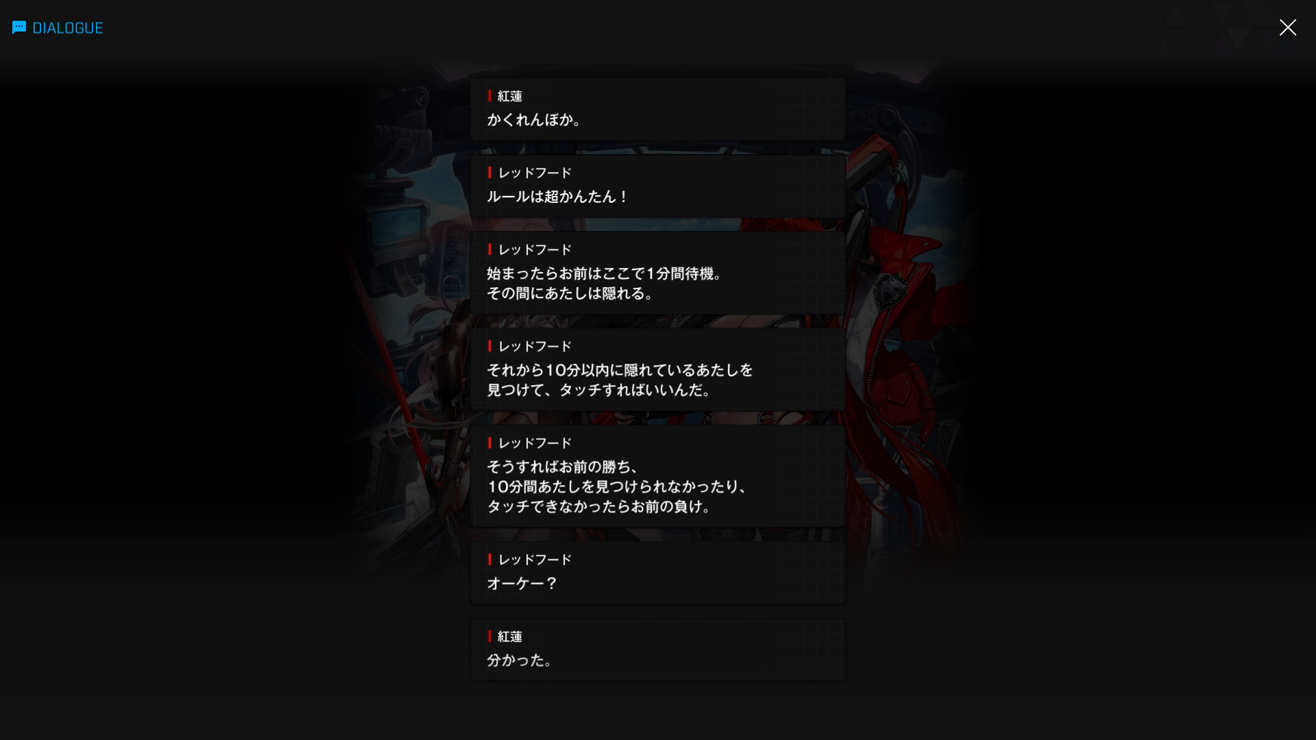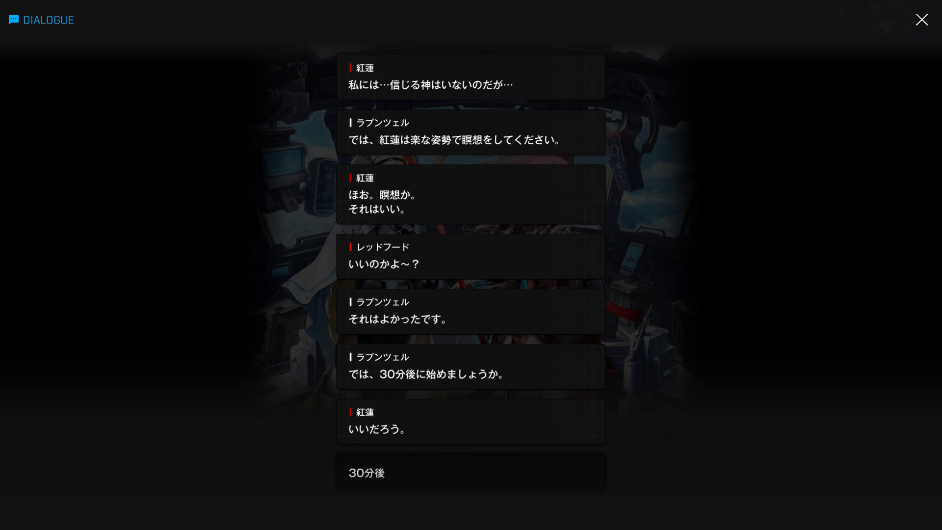 ・こちらのスノホワID同様、エピソードは当時の状況 & 面談内容は『思考転換後の白紅蓮が自分の過去を回想する』という特殊な形式で話が進む → そのため、会話相手は主人公の代わりにゴッデス指揮官が担当している