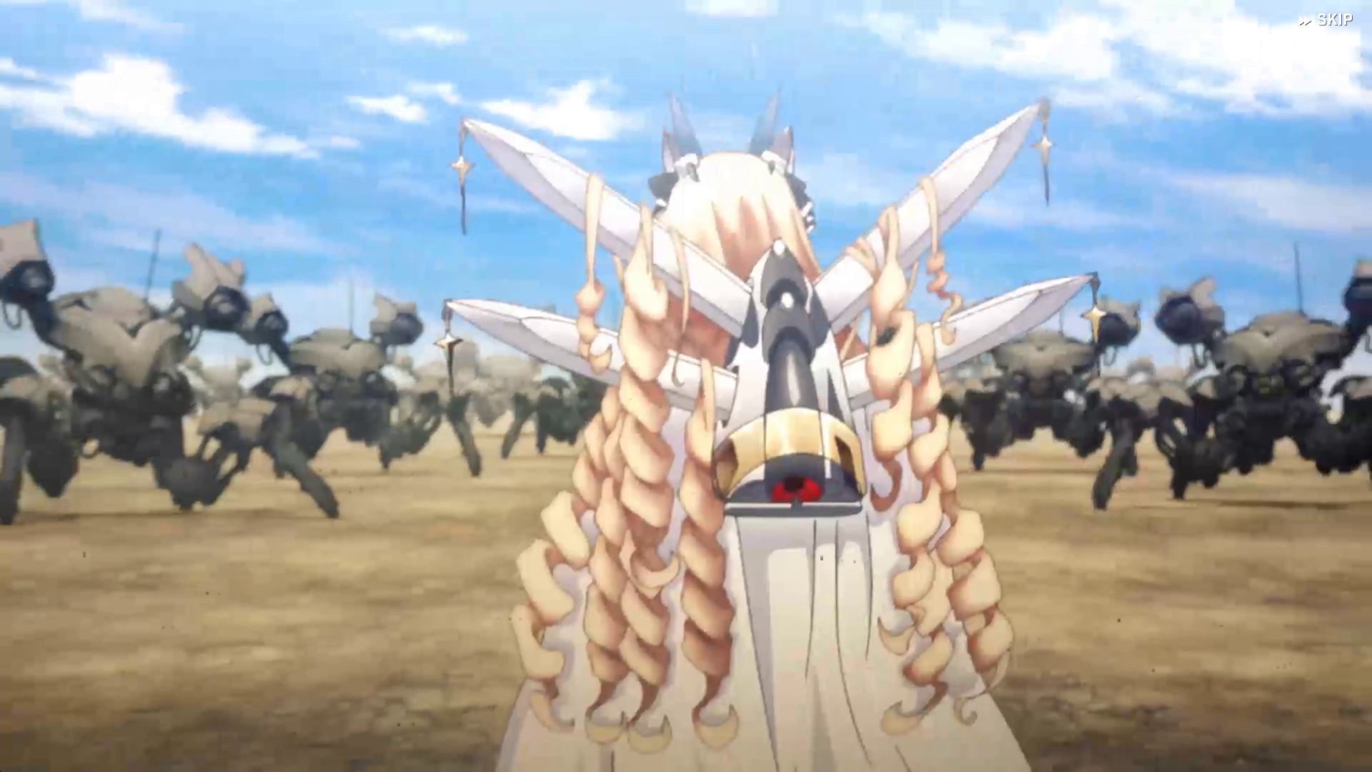 ・「⋯⋯じゃあ、クラウンはどこにその宝具を装備していたの?」という疑問が発生 & 彼女の立ち絵などで、ナユタの右手首にあるような『それっぽいもの』は見当たらない → 管理人的には、以下SSで確認可能な『背後の奇妙な装置』or 2枚目の胸に輝く赤いブローチ?と推測している(イベント『LAST KINGDOM』第2部『最後の王国:B』より)