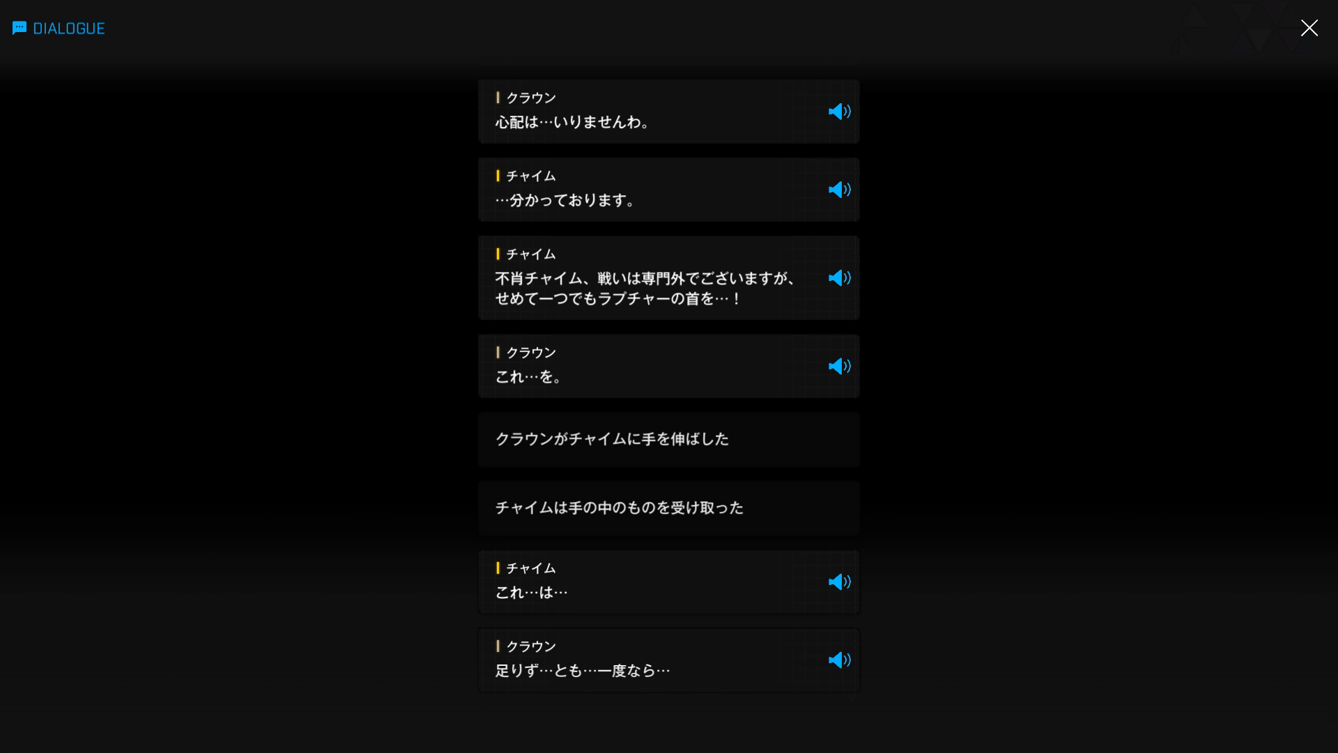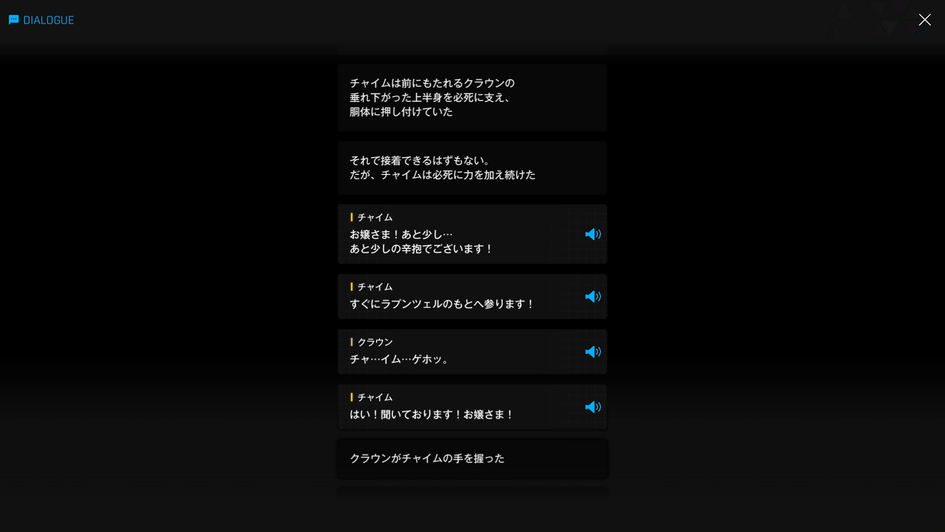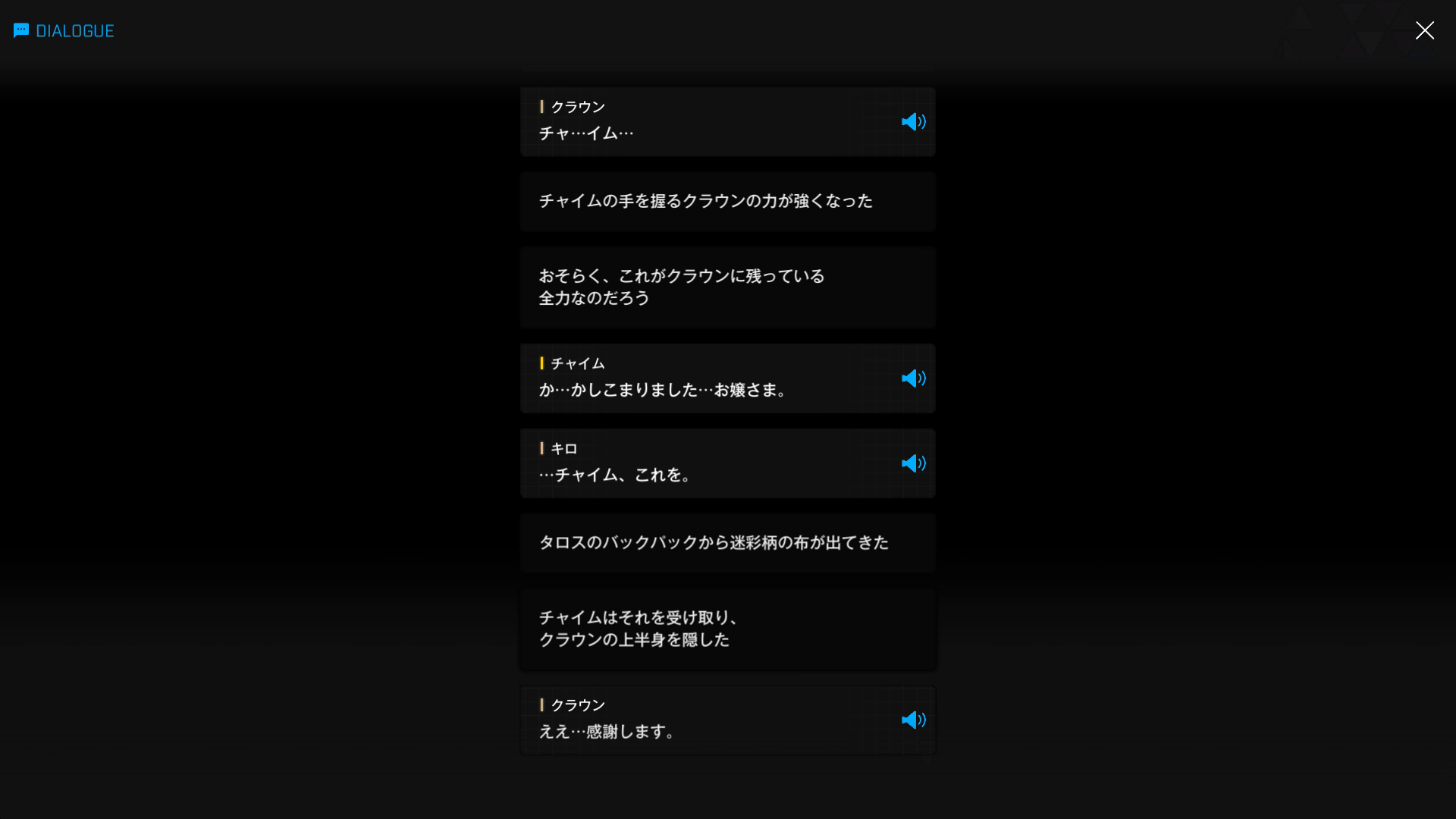 ・1 & 2段落目の言動だけで、クラウンが何を望んでいるのかを瞬時に理解したチャイム & キロ達はさすがである & 自ら王国民を名乗っているのは伊達ではない → ちなみに、管理人は何のことかさっぱり理解できなかったため、彼女のファン失格 & もっと精進しようとケツ意⋯⋯もとい決意を新たにした(『誇り高き称号』より)