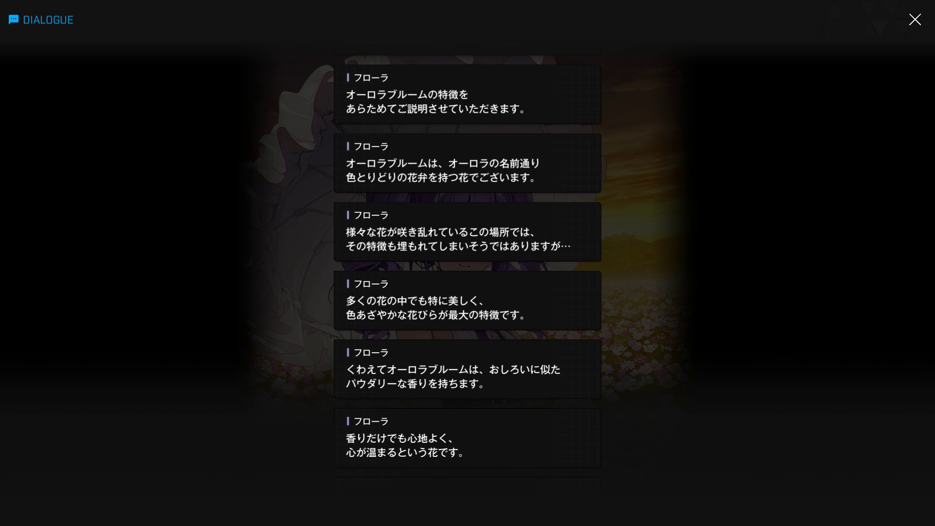 ・詳細は以下SSのとおり → フローラの追加説明によれば、「かなりの希少種」& 2枚目のような内容らしい(『希少種の花:A』&『オーロラブルーム:A』より)
