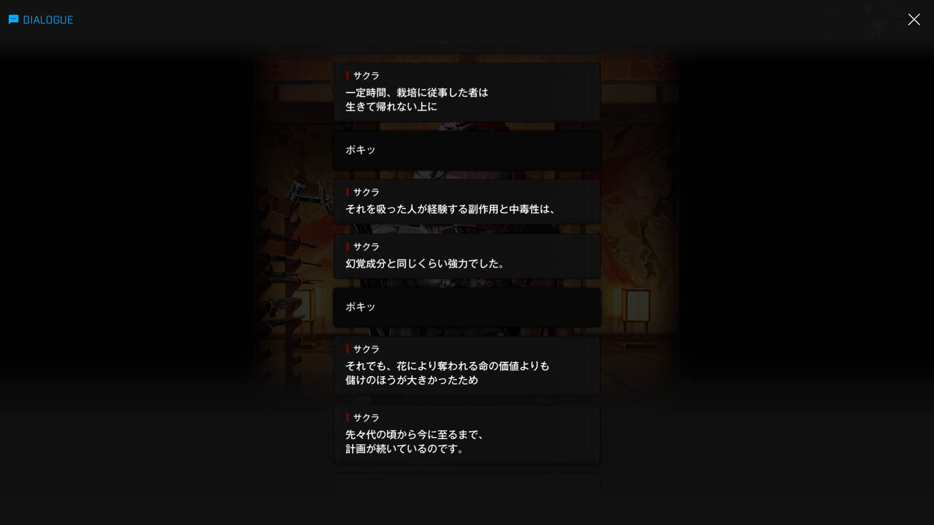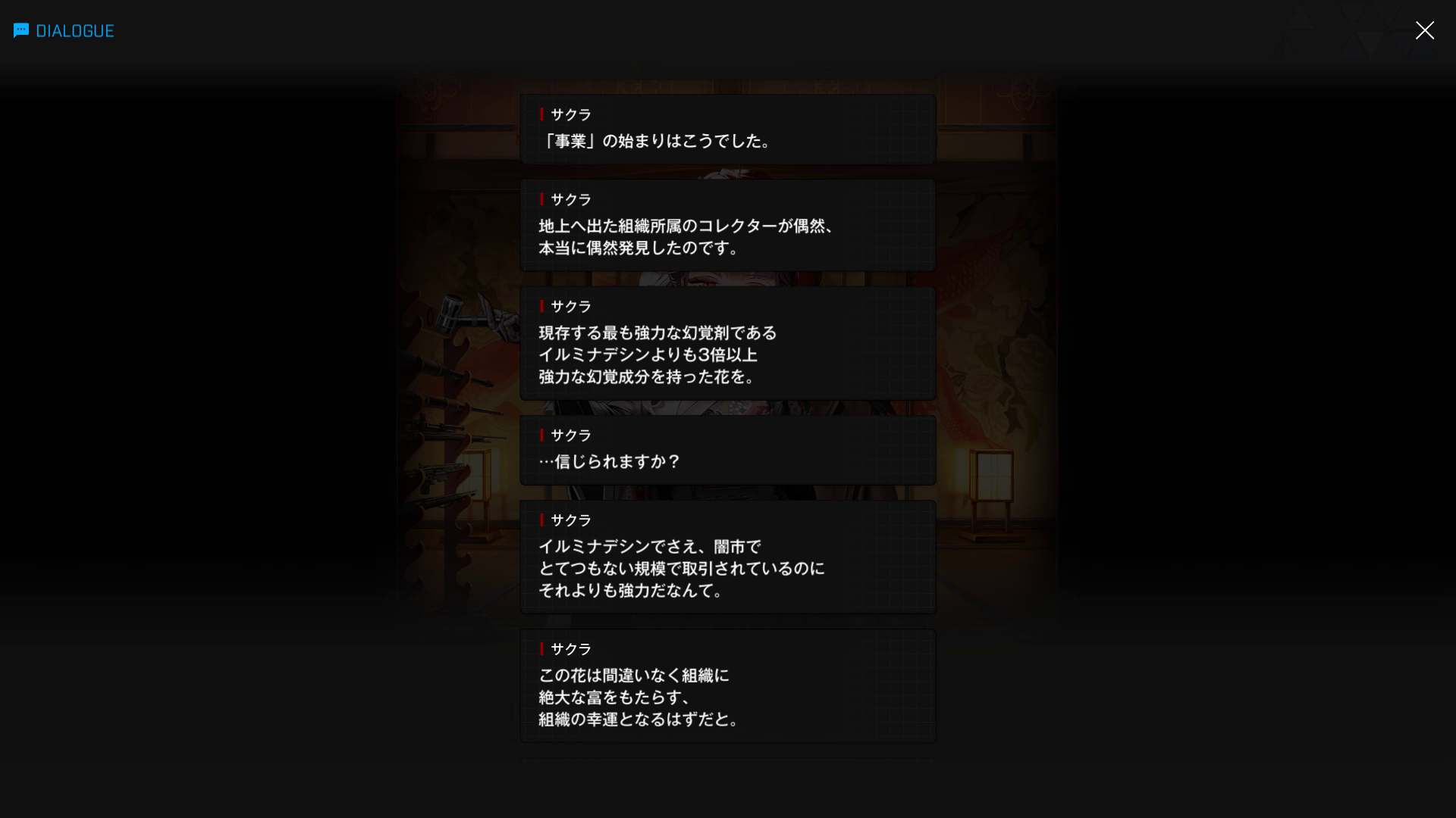 ・ここで秘密裡に栽培されている花の名前は不明だが、以下SSの内容どおり『NIKKE世界における禁忌の花』と言えよう → イルミナデシンの詳細はこちら