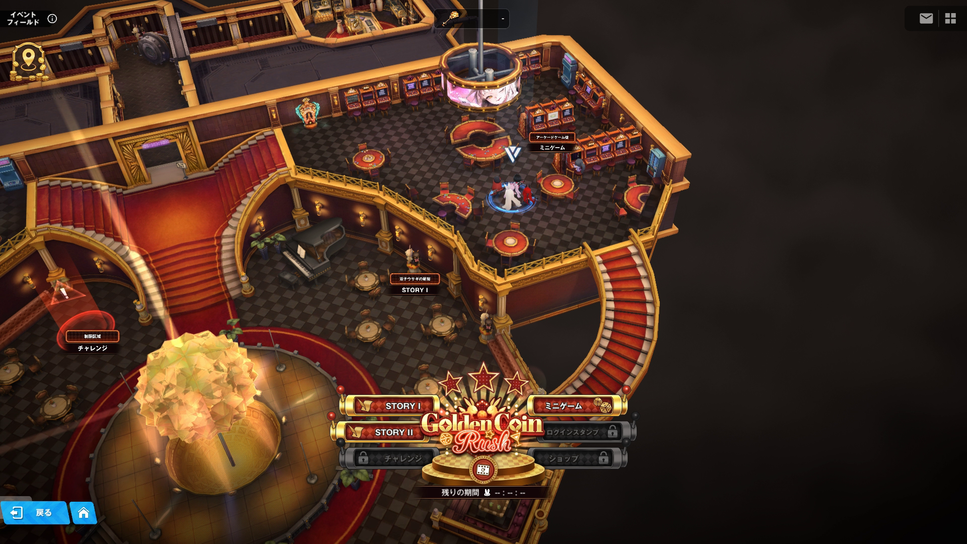 内部はかなり広いため、各エリアの目安SSを掲載しておく(イベント『Golden Coin Rush』より)
