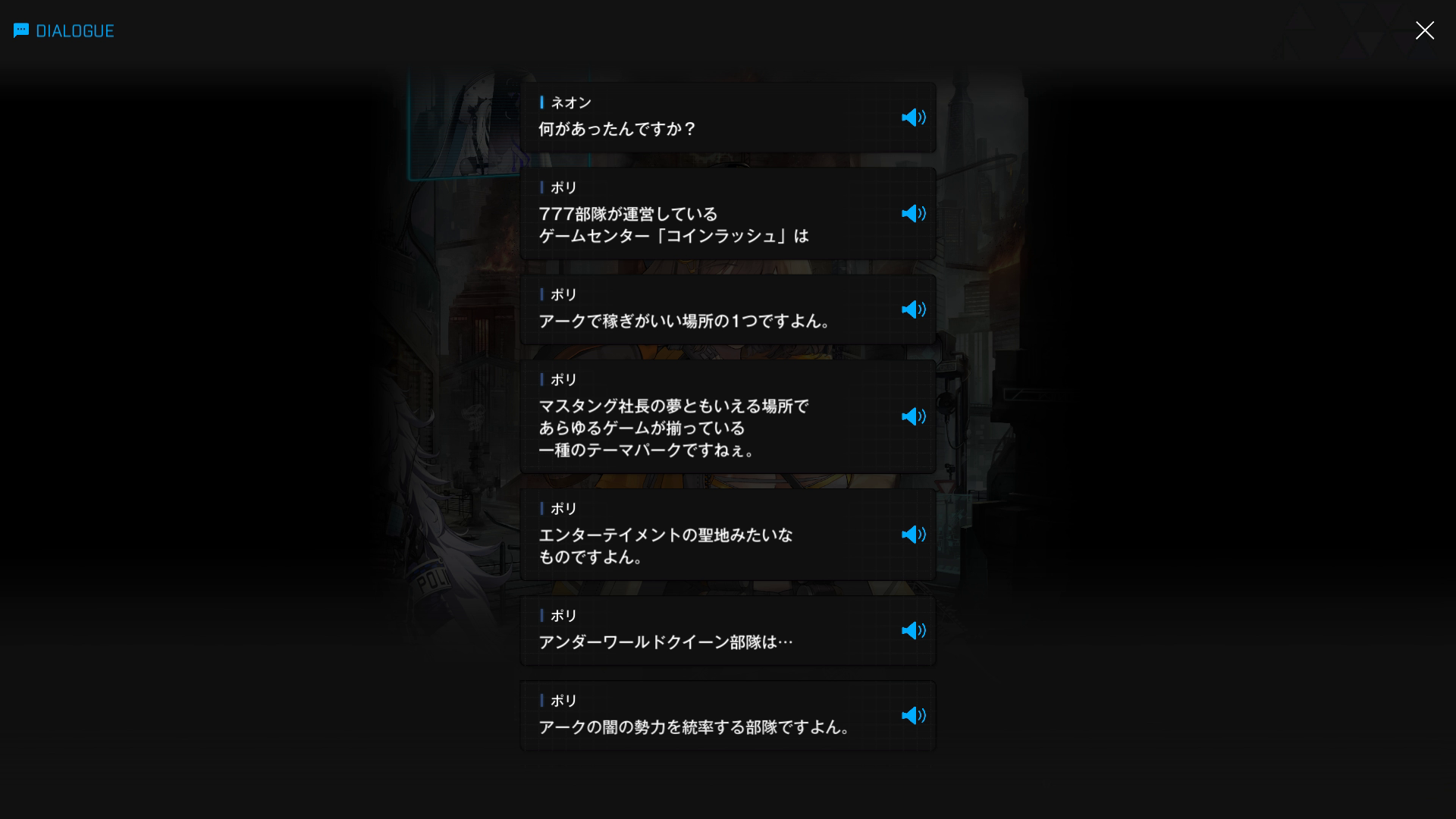 ・A.C.P.U.の正式名称は、『ARK CENTRAL POLICE UNIT』の頭文字 → 日本語で『アーク中央警察』という感じだろう(こちらの0分07秒あたりに明記されている)