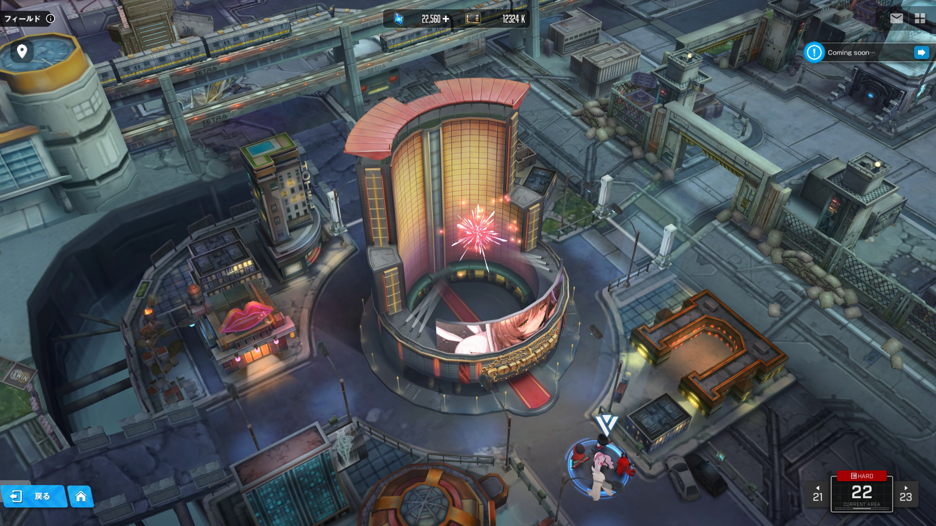 ●右エリア:1階にピアノ+飲食 & 休憩可能なスペースがあり、2階は各種ゲーム機多数 & 外観の上部同様、頭上の輪っか形ディスプレイに双子バニーの映像が延々と流されている