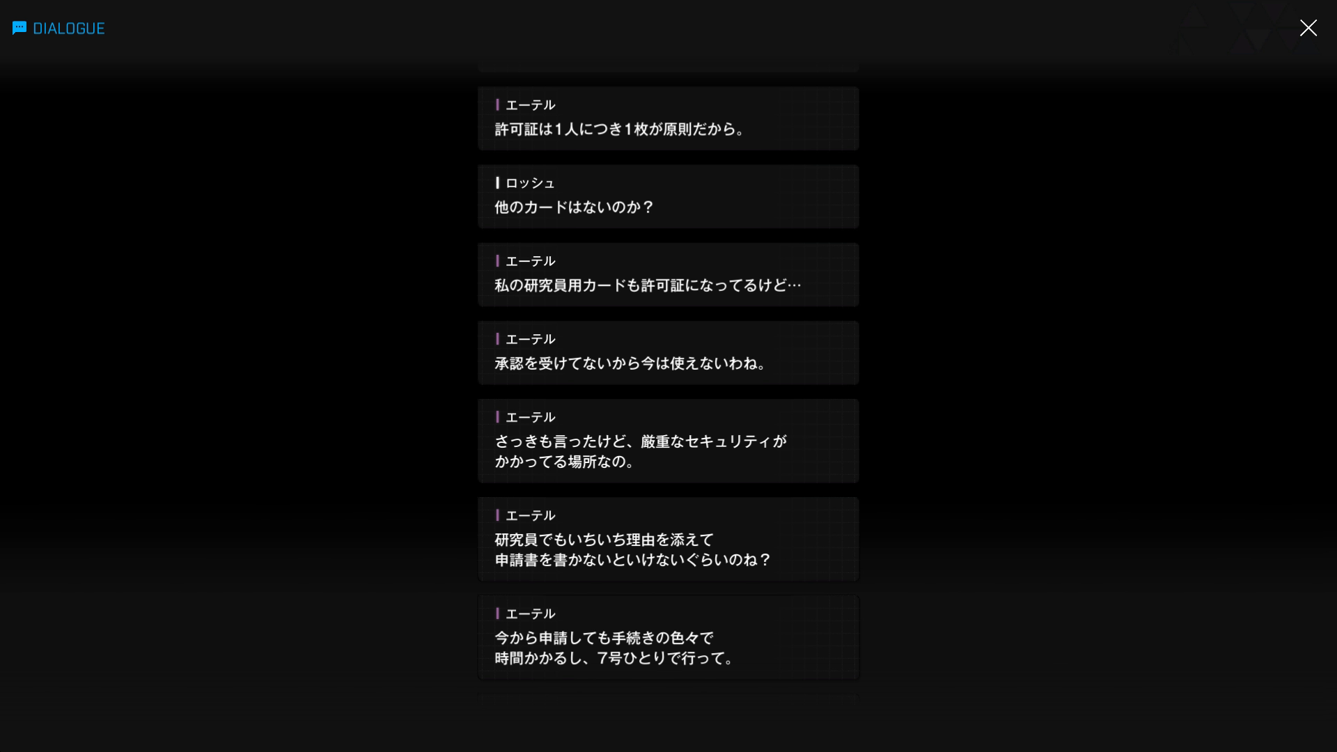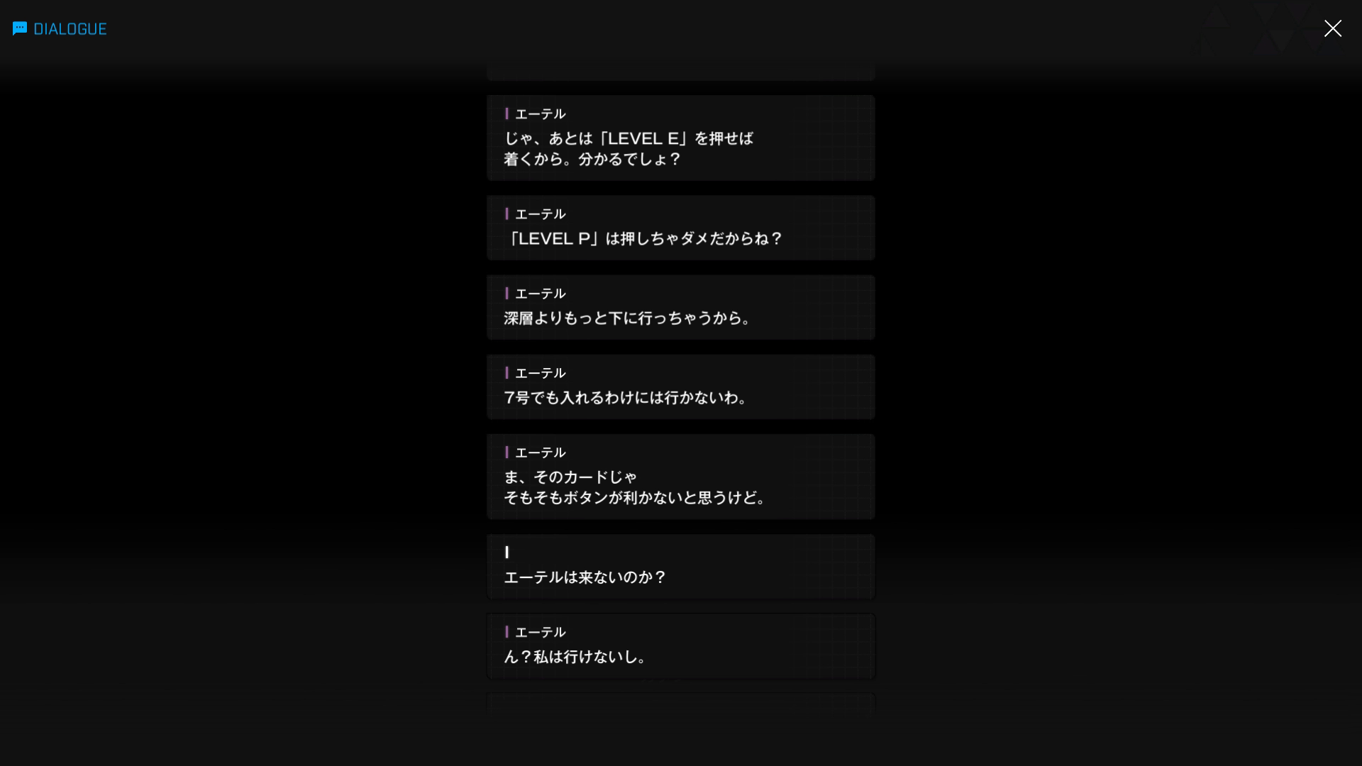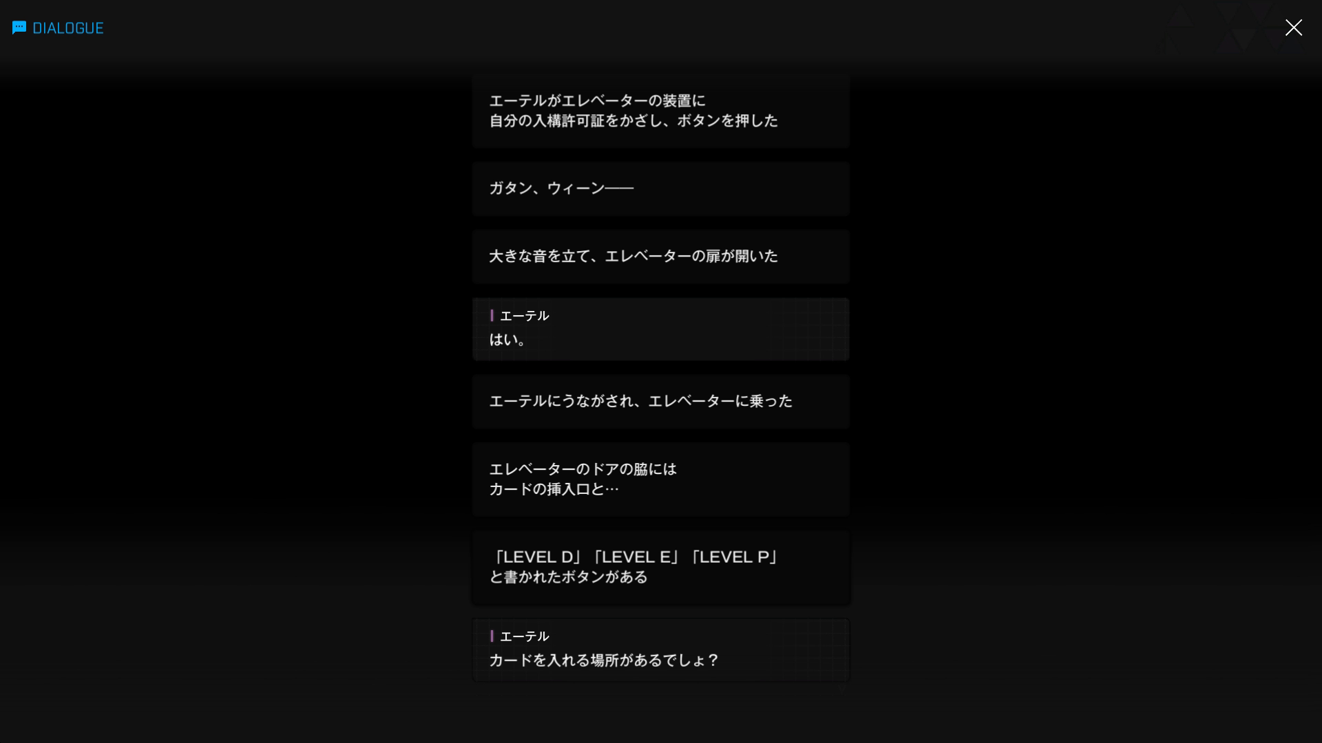 再度入構許可証を差し込むと、D & Eのランプが点滅 → 以下SSのような話をしたあと、彼1人で深層へ