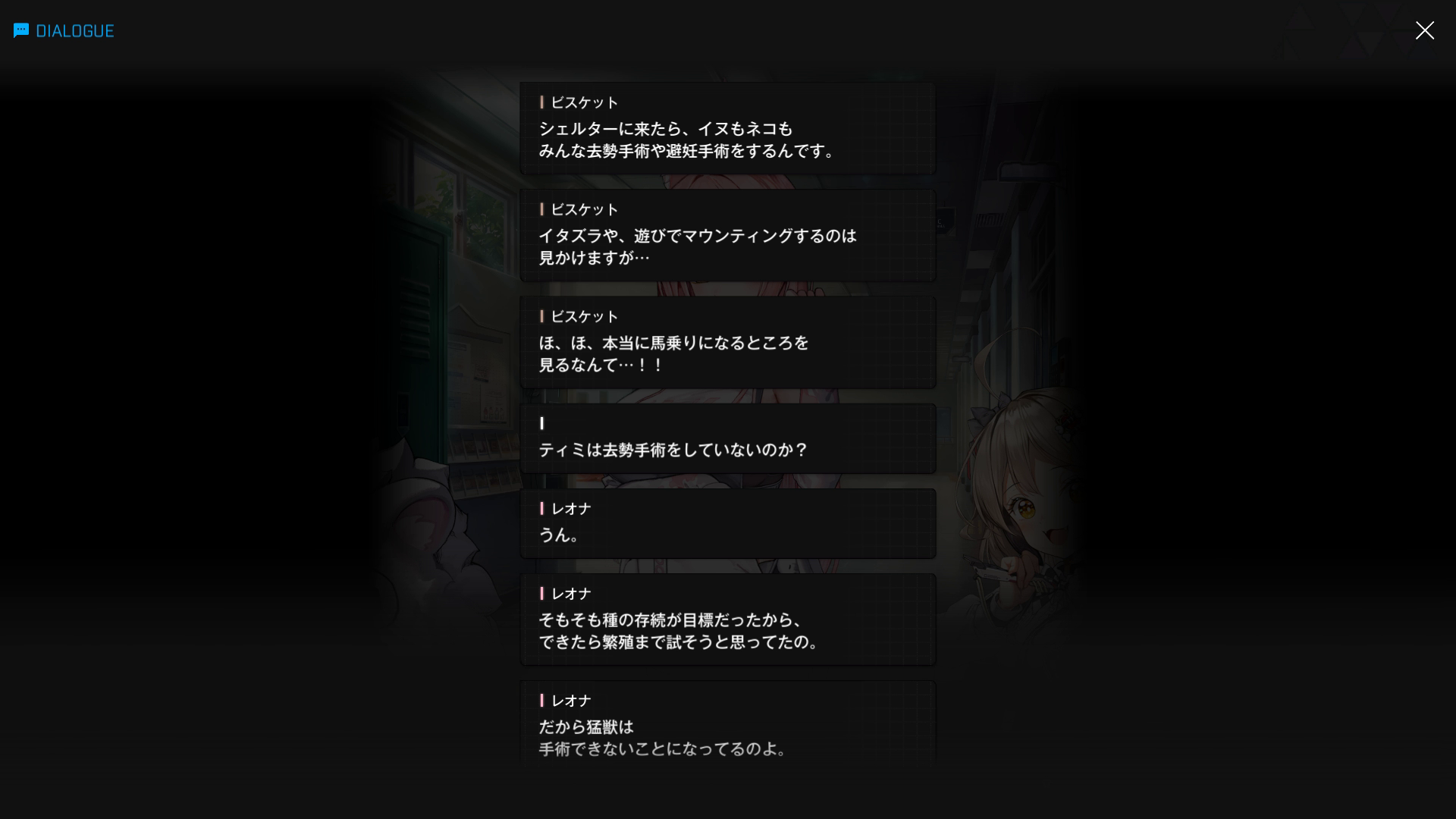 ・シェルター内の動物達は、以下SSのような状態で保護されている(レオナエピソード2より)