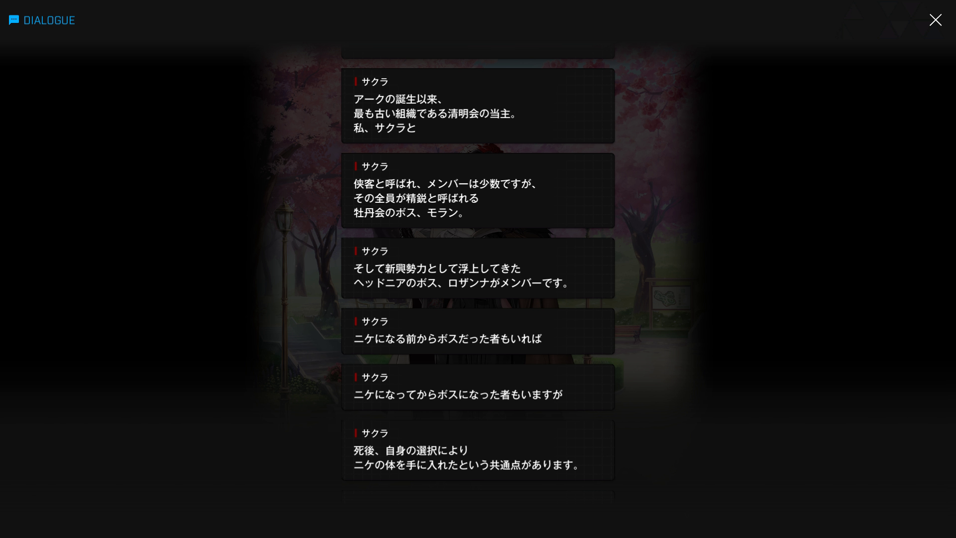 ・上記SS & 他所で明かされた情報をひとまとめにすると、大体以下のような感じ → 清明会は『サクラ』、牡丹会は『モラン』、ヘッドニアは『ロザンナ』として表現 & 各項目の高い順に並べてみた