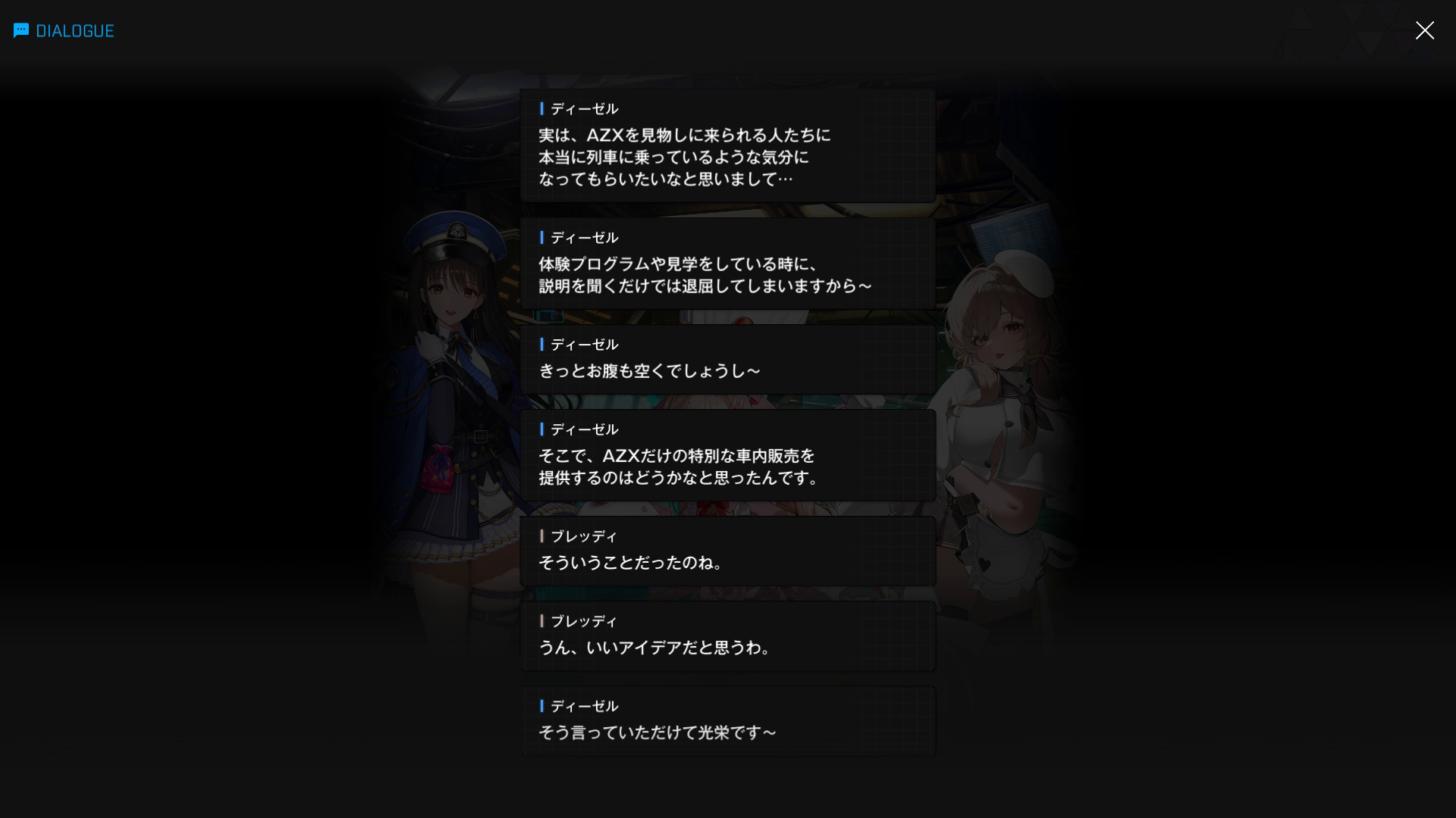 ・『もしも』の質問シリーズで、過去に戻れる機械が発明されたら『戻りたい』& AZXに乗ってどこまでも行けるとしたら『海』を希望するとのこと(ディーゼル面談:10 & 11より)