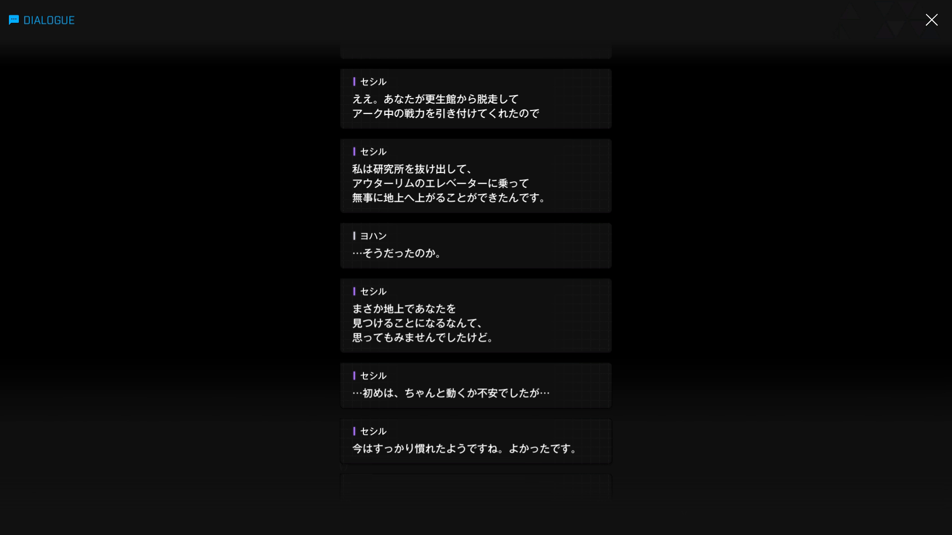 ・ラプチャーが徘徊する地上でこのような設備を作り、どのような方法で稼働 & メンテしているのかという疑問も生じるが、特に疑われることもなく地上を行き来できるのは、指揮官以上のごく限られた人間 or 随伴するニケ → シフティーの話 & エクシアは実行可能で、『アウターリムの人間も含まれている』ということ(CHAPTER.22『モランの仕事』より)