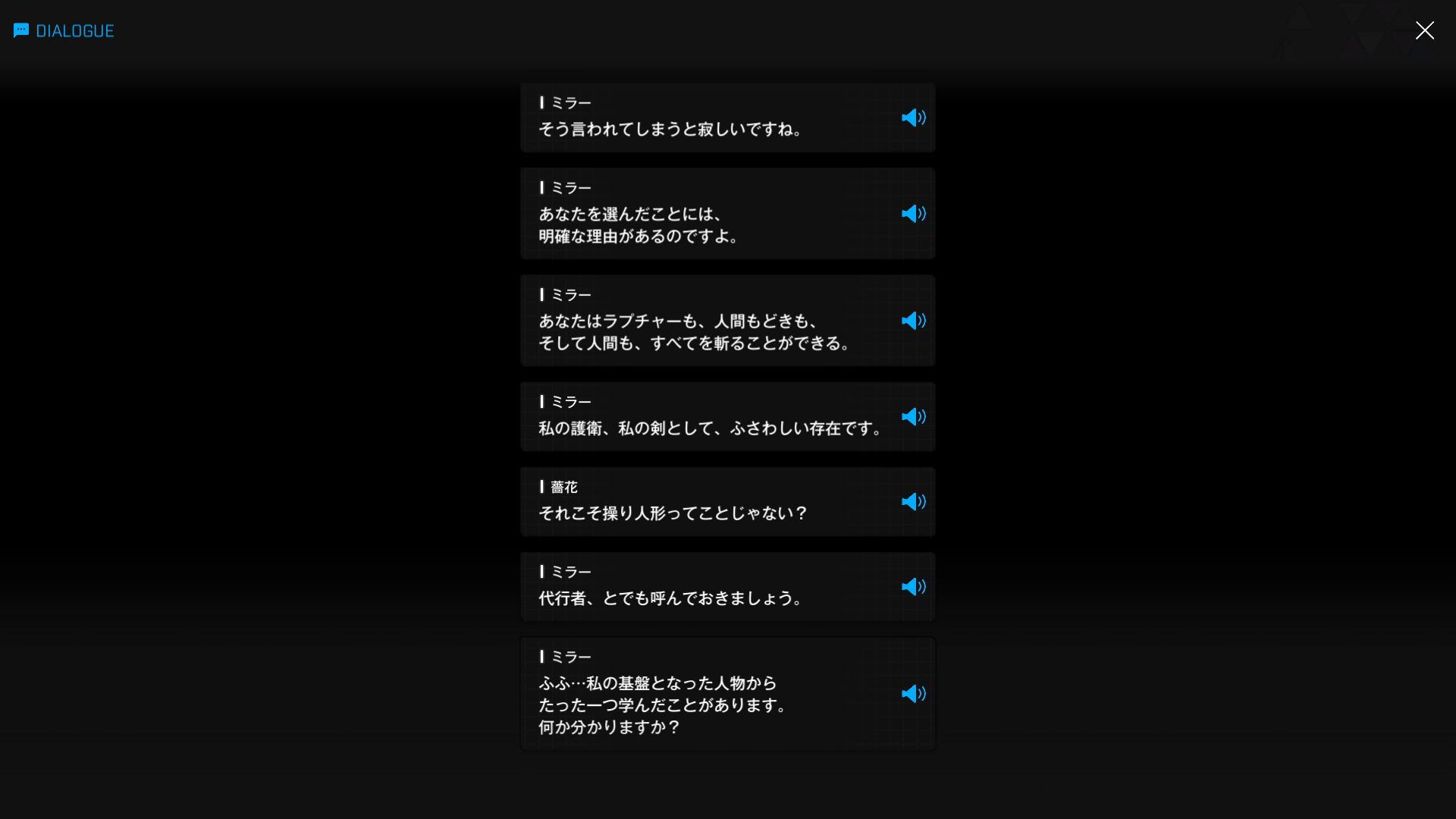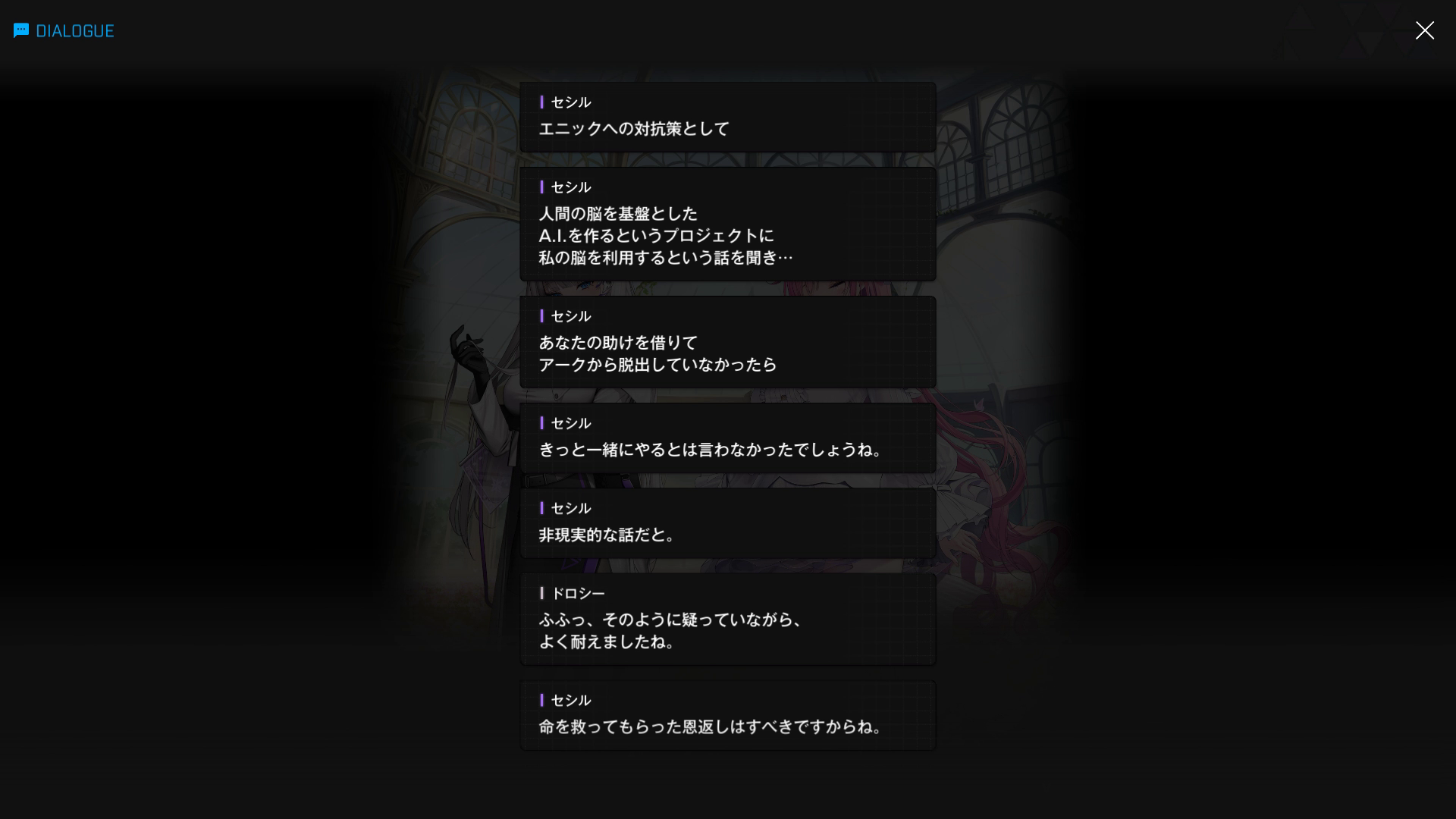 さらに上記で述べたとおり、彼女がアークから逃亡した際、当時『25歳の人間』だったとしても、それは約57年前の話 → つまり、現在は80歳を超えているはずだが、管理人的には20代の若々しい容姿にしか見えないため、『マナ & エーテルのようなミシリス所属のニケ』だったのではないかと推測(詳細はこちら)