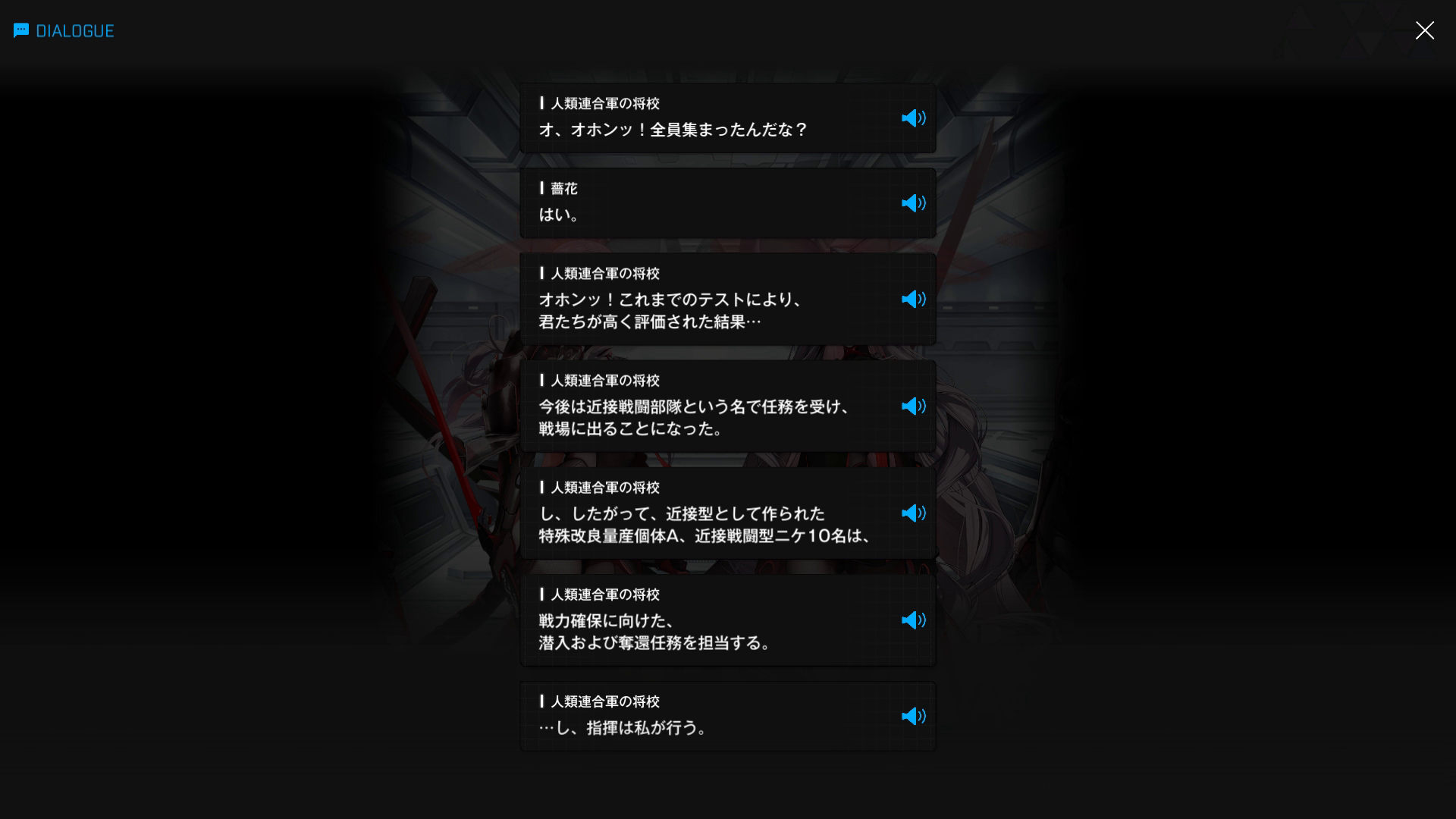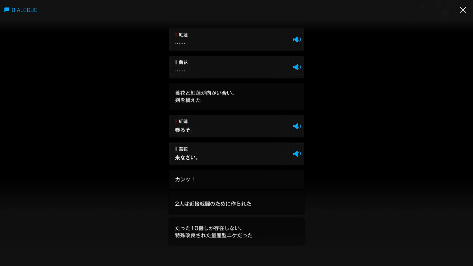 上記2枚目5段落の内容を読んだ際、『薔花 & 黒紅蓮姉妹2名+近接戦闘型ニケ10名の合計12名』と勘違いしそうだが、以下SSのとおり『10機』と明言されている(『月明かりの下の出会い:B』より)