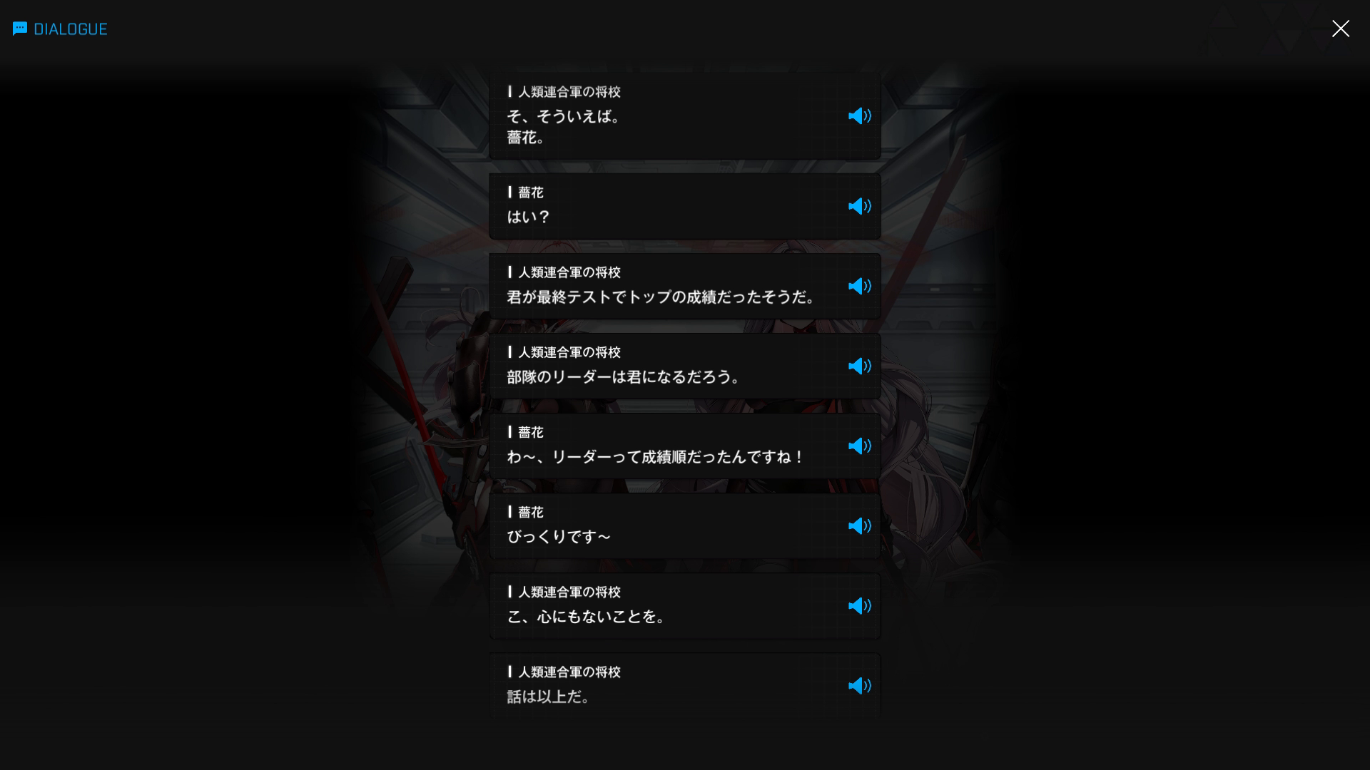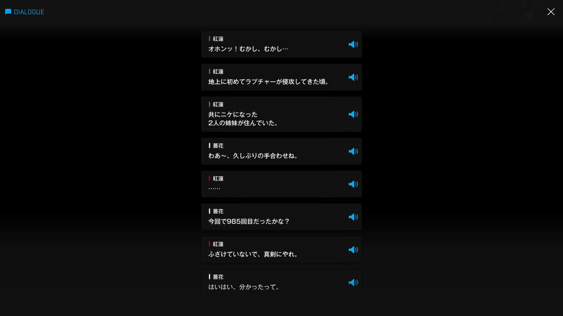 ・黒 & 白紅蓮が人間だった頃の実姉で、ニケ化後もその記憶は残っており、黒紅蓮は彼女のことを「姉さん」と呼んでいた → 以下SSのような経緯で、『総勢10名』が在籍する特殊部隊のリーダーに任命される(『月明かりの下の出会い:B』&『剣を持った姉妹:A』より)