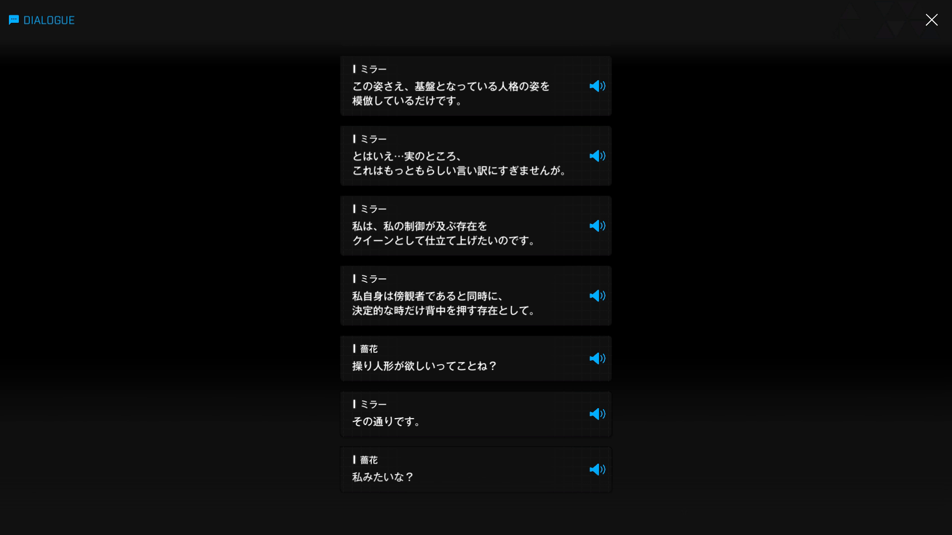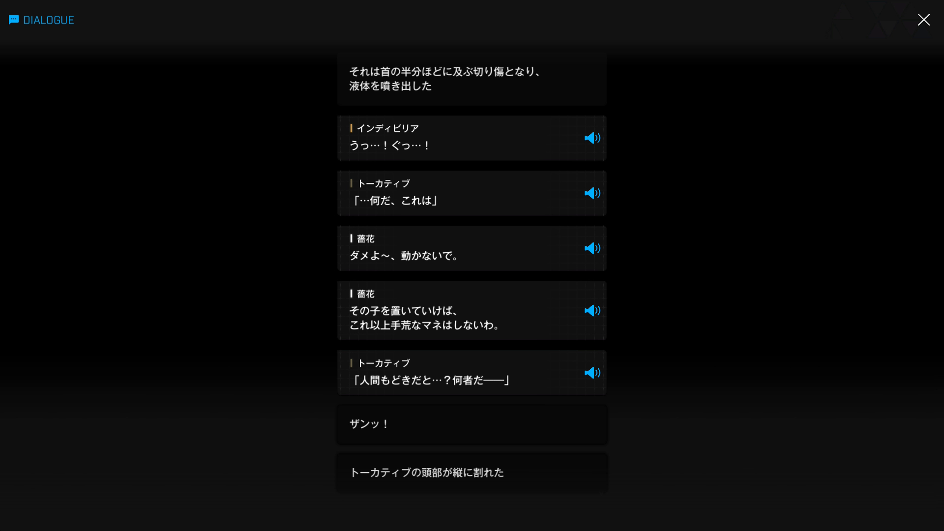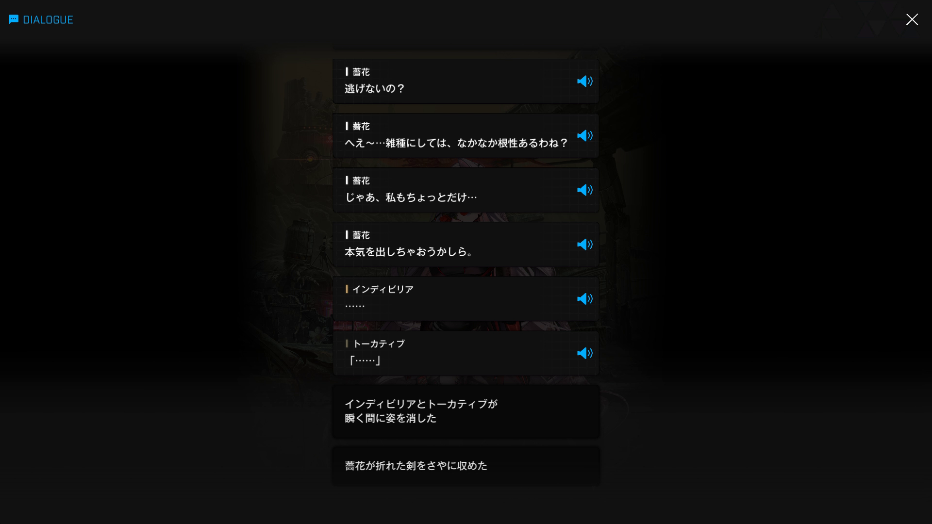 ・何の前触れもなく突然現れた薔花に、管理人を含め、諸兄も「⋯⋯は? ⋯⋯え? 何で蘇ってんの!?」と思ったはず → しかも、ヘレティック2体がビビりまくり & 無言で一目散に逃げ出すほどの圧倒的な強さを誇示する(『紅い鏡』より)