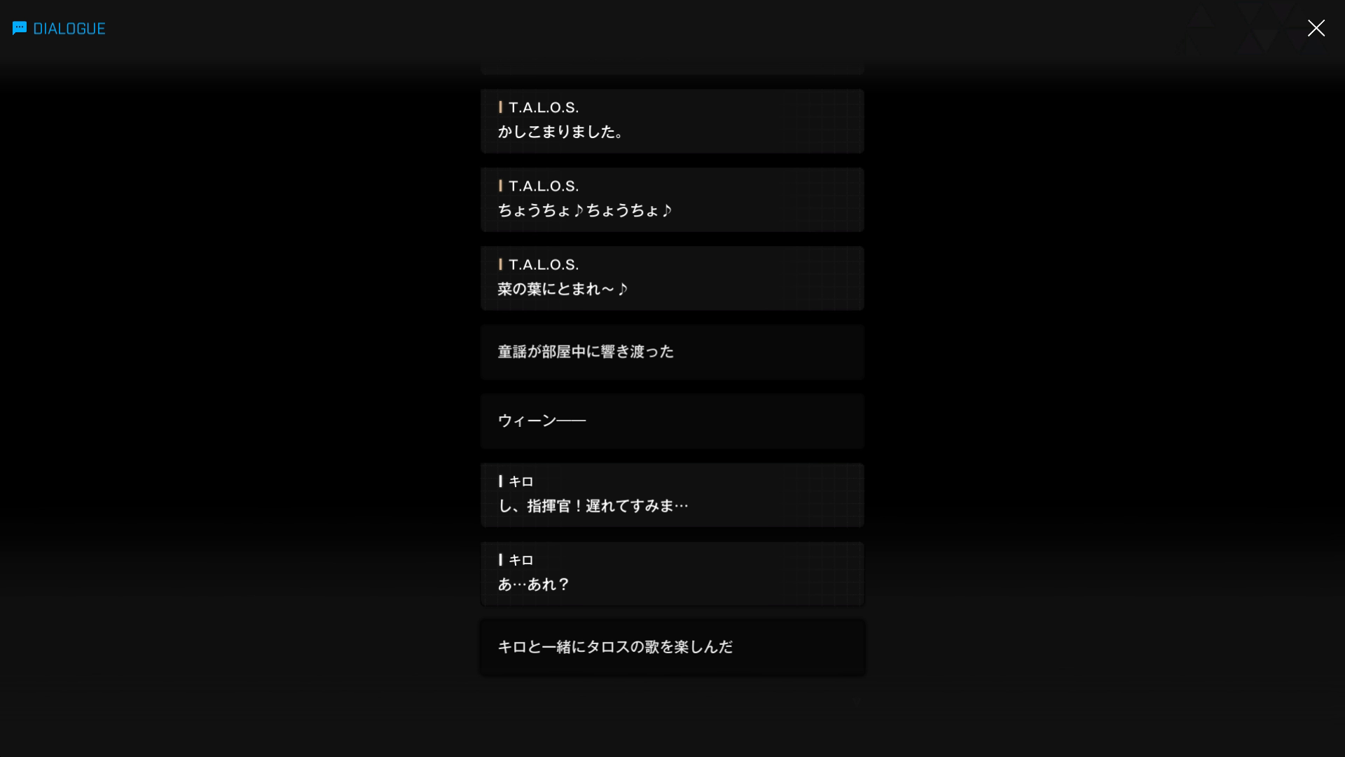 ・キロエピソードなどでも主人公と会話するシーンは一切なく、呼び方は永遠に謎のままで終わると思われたが、以下SSのような証拠がちゃんと残っている → 基本的にキロと同じ呼び方をしているのだろうが、管理人が確認した限り、様付けで呼んでいる時の方が多い(突発イベント『警察署』の『タロス・パーキングスペース』& キロ面談:06 & 19より)