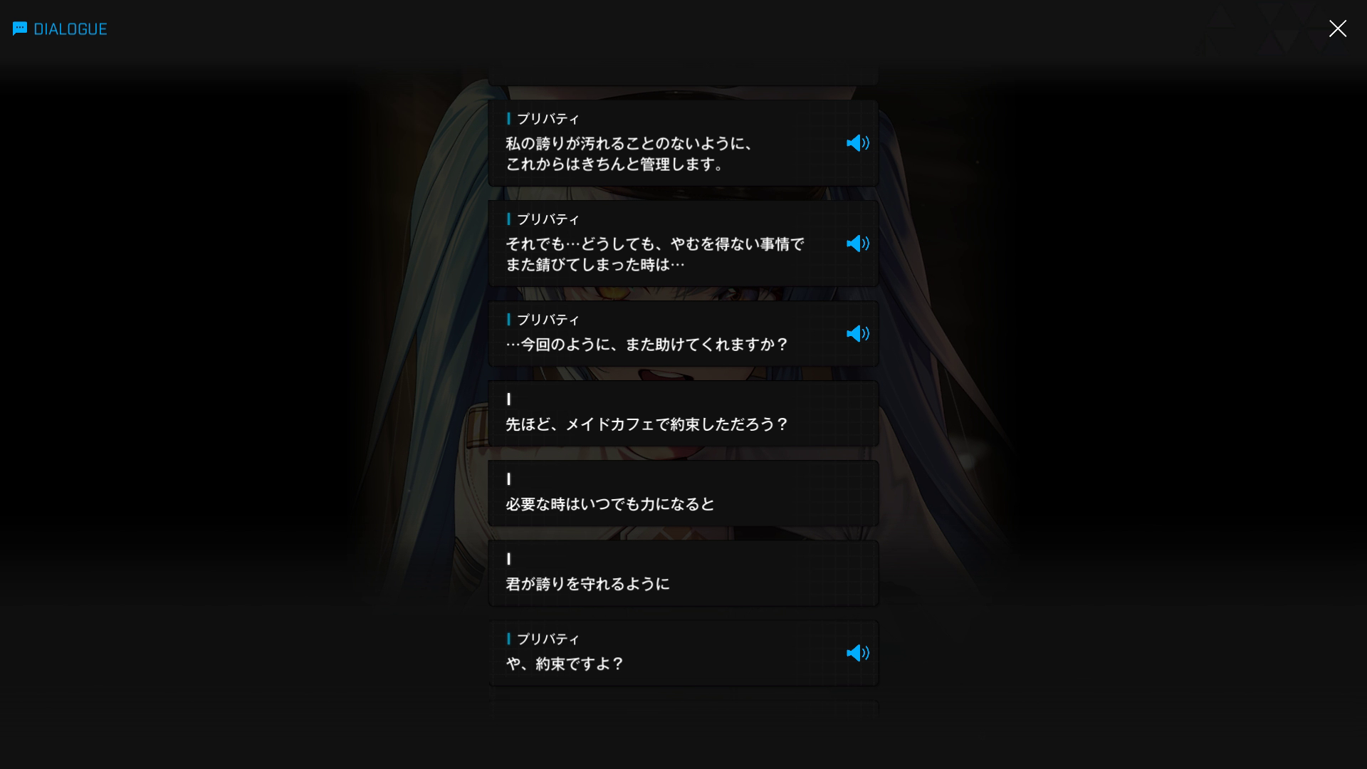 ・横流しの件で第1部隊の副司令官(おそらくバーニンガム)から、ユルハを通じて「謹慎処分にしておくから噂が鎮まるまで誰にも会うな」と伝えられる → 彼女曰く「プリバティはかわいがられているからこの程度で済んだ」が、追いかけようとしたアドミには「懲戒処分になるから行ってはダメ」と制止するほど扱われ方が違う(プリバティエピソード3より)