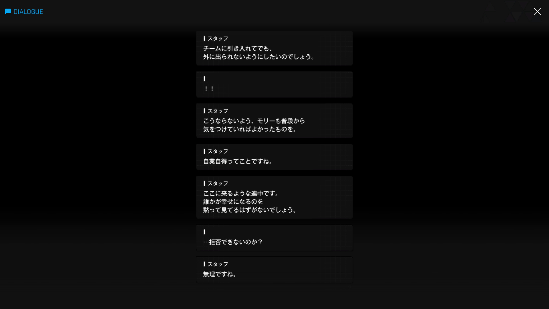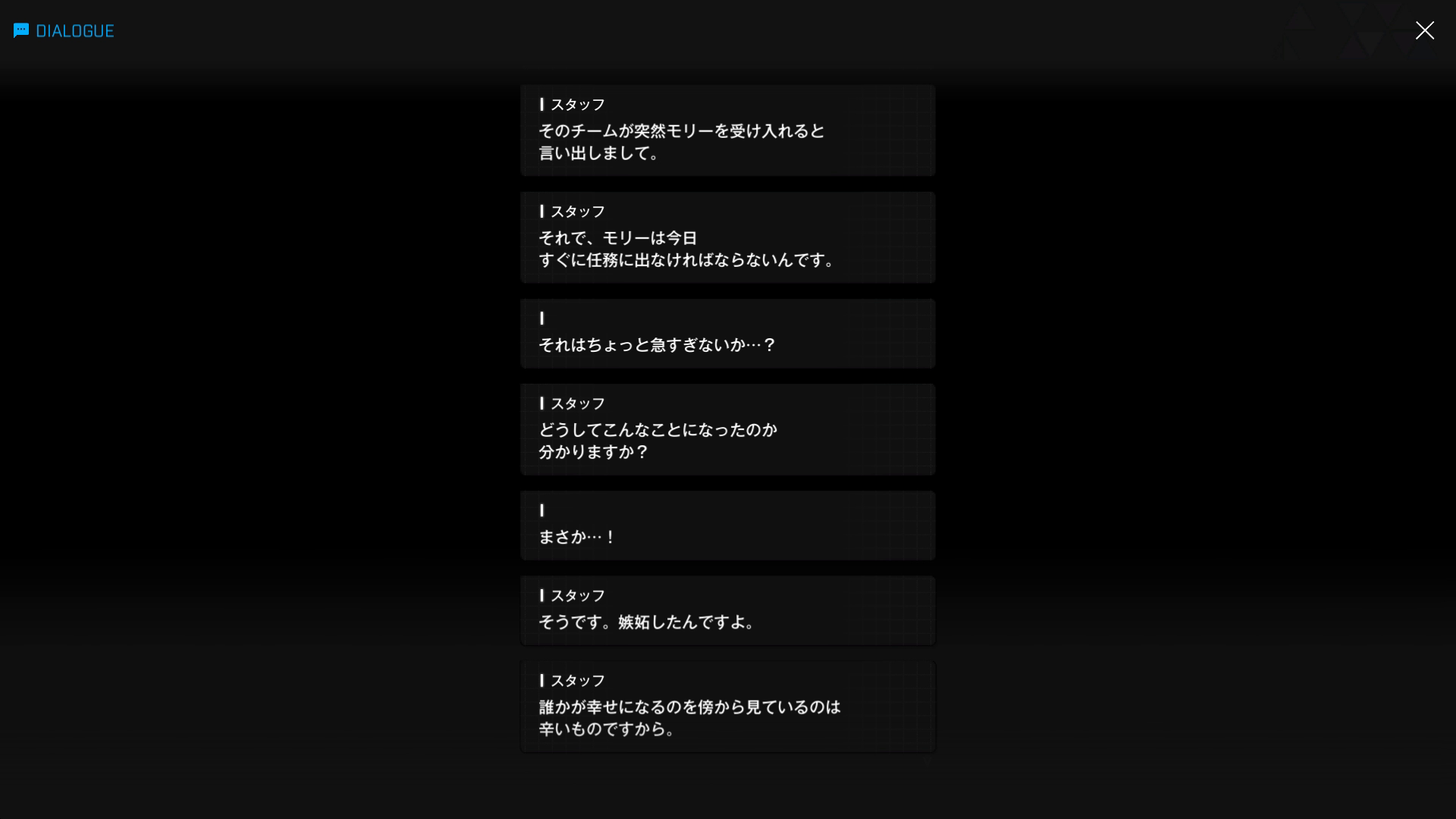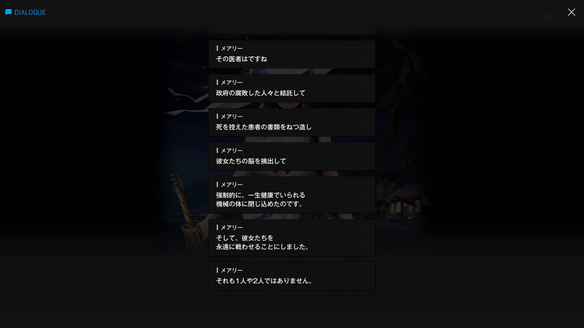 ・上述の面談:07でも、人間だった頃の正義感はそのまま残っていることがよくわかる → しかし、以下SS前後の内容は一見話の筋が通っているように見えるものの、とりあえず例のごとくこちらで容赦なくツッコミを入れようと思う(イベント『Blue Water Island』第2部『デジャビュ:B』より、『デジャヴュ』はイベントに合わせて同様の表記に)