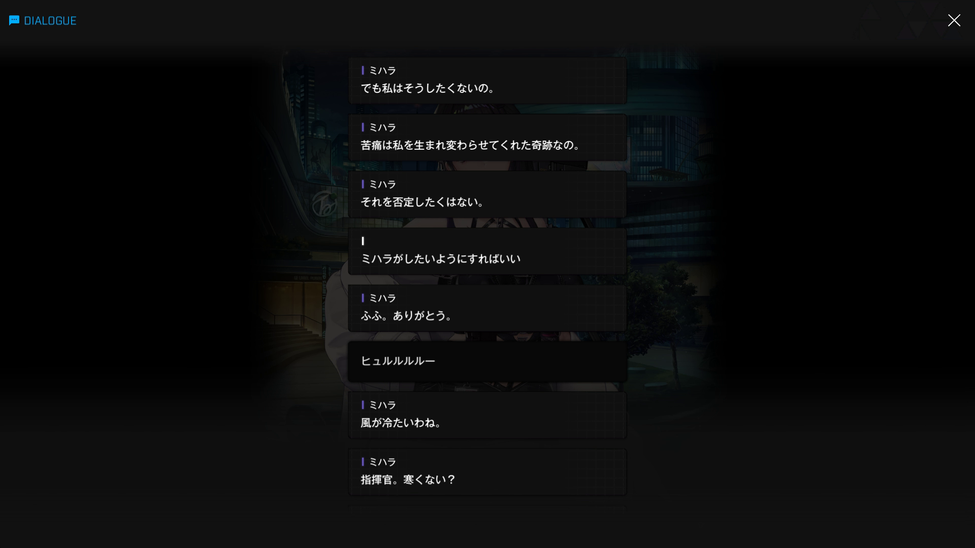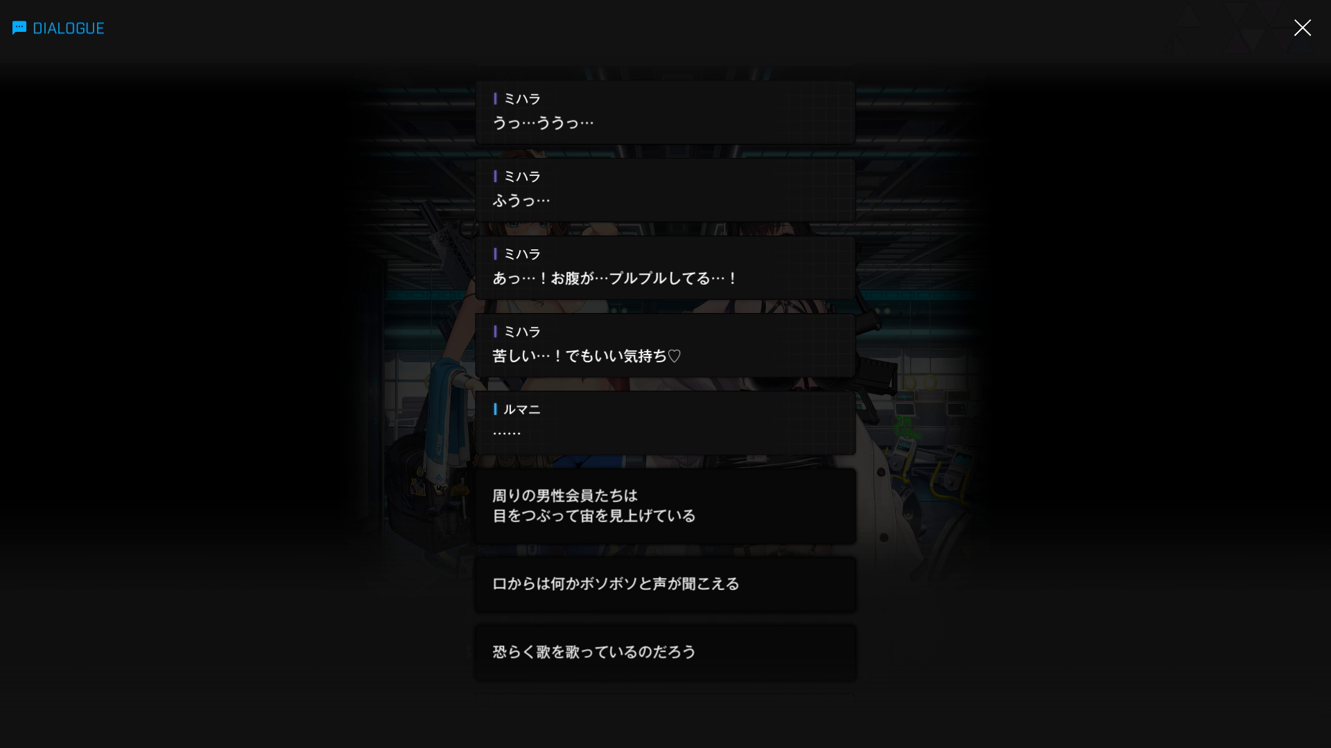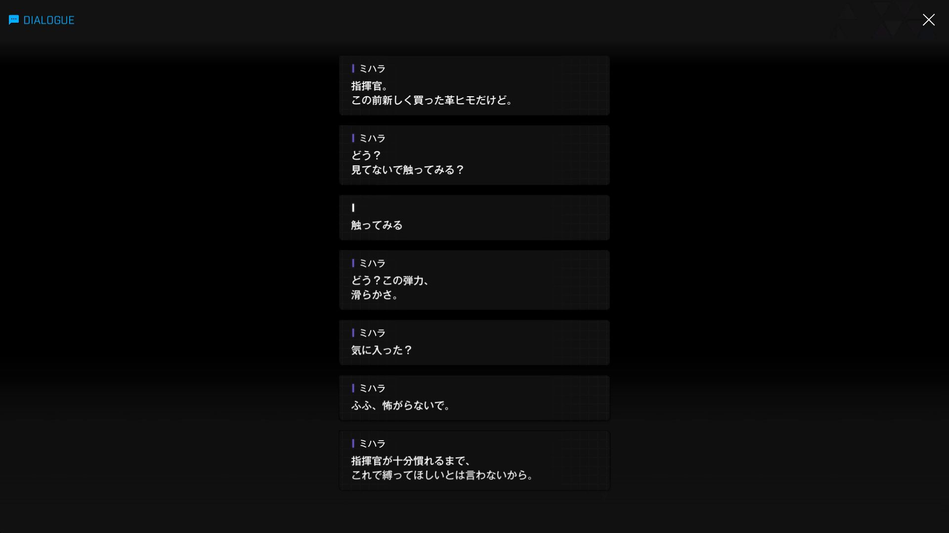 ・ユニを攻めの『S』とするならば、ミハラは受けの『M』であることは間違いないが、彼女曰く「ニケになる前は至って平凡な少女だった」とのこと(ミハラエピソード4より)