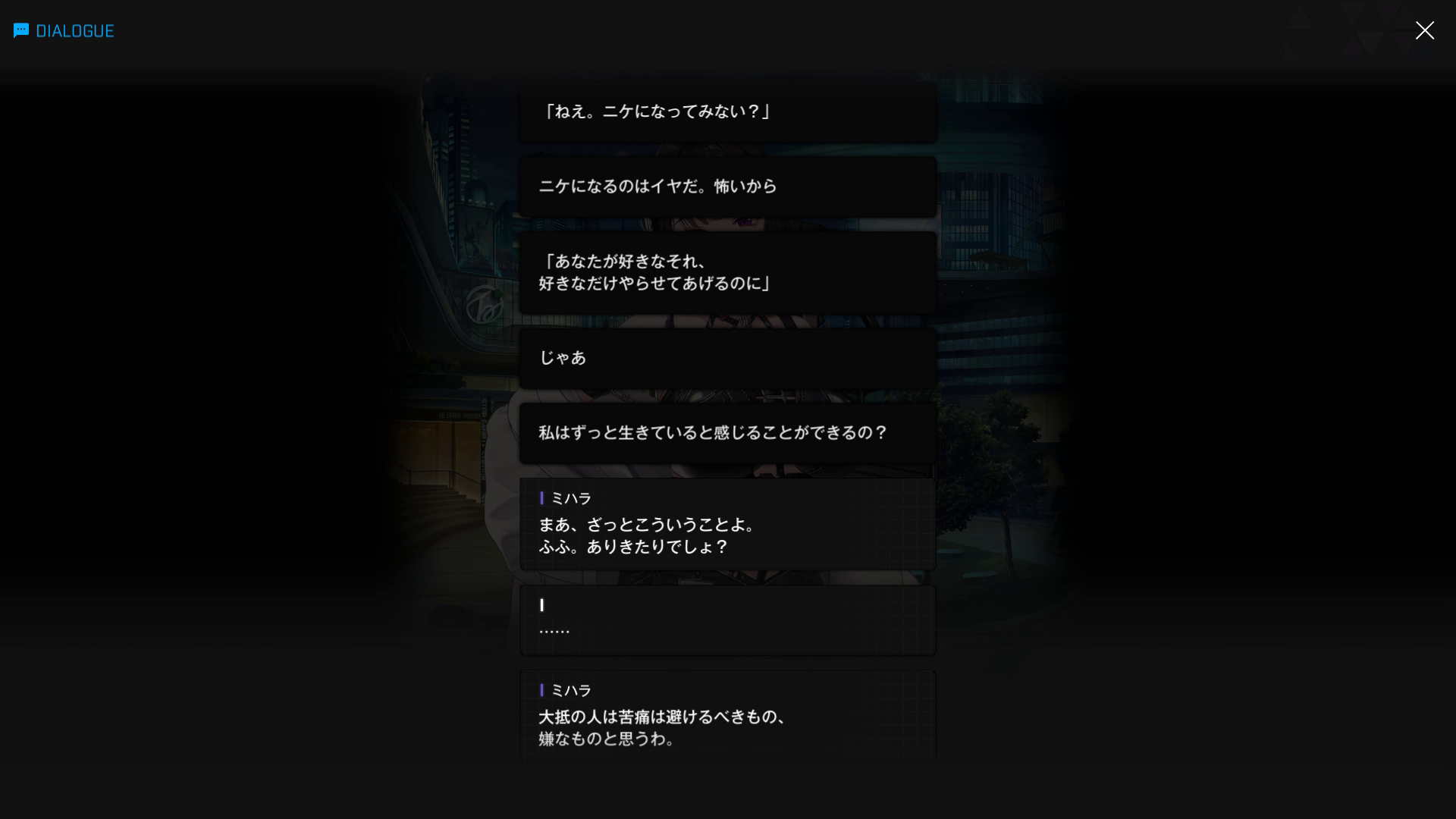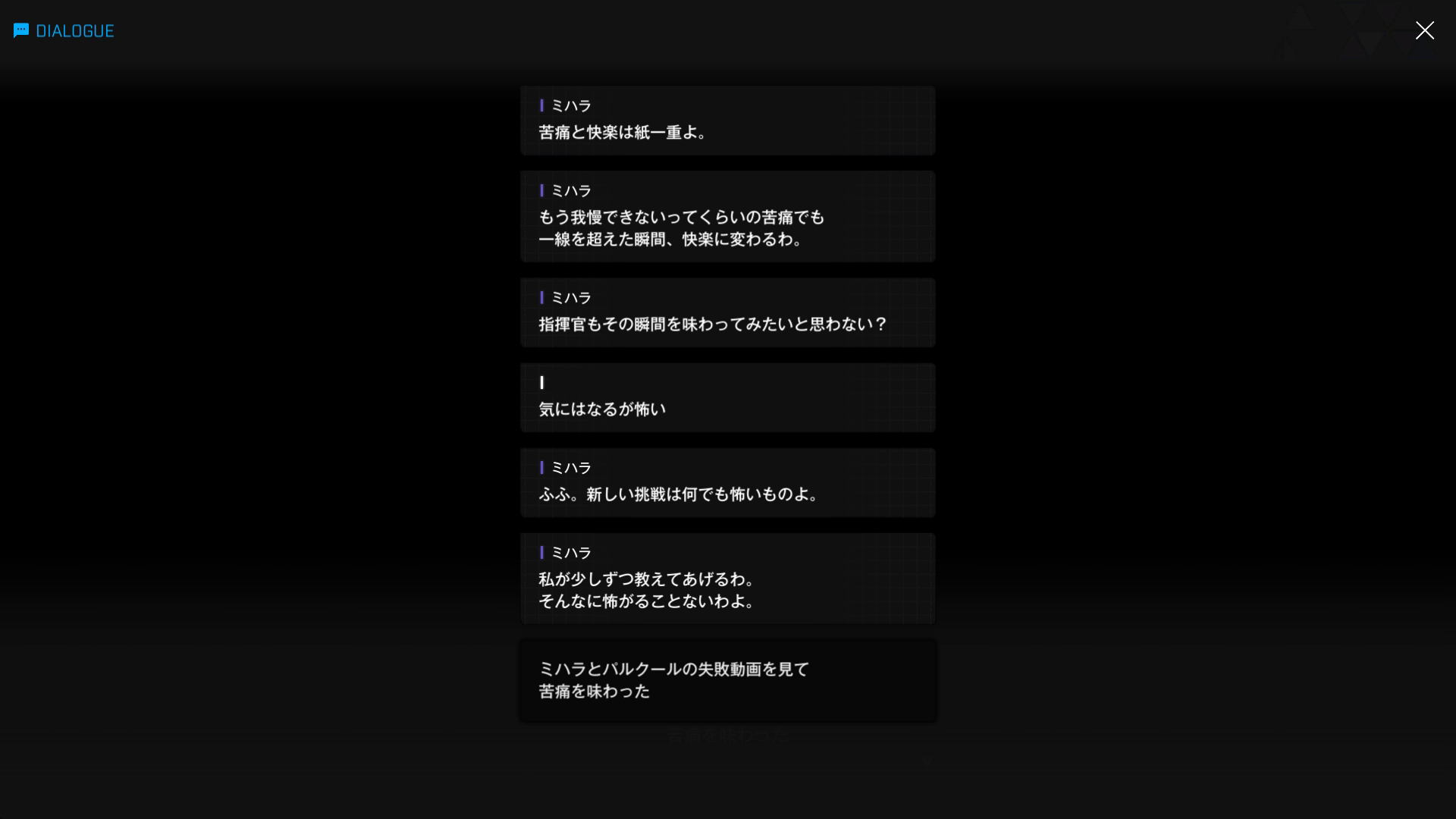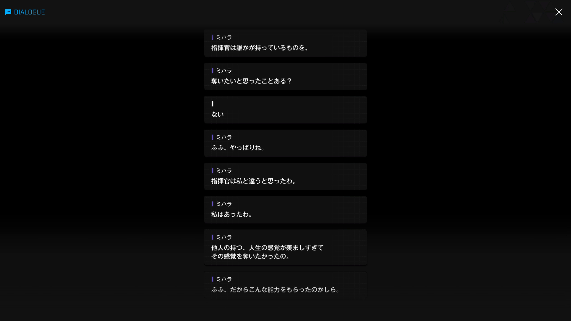 ・ユニを攻めの『S』とするならば、ミハラは受けの『M』であることは間違いないが、彼女曰く「ニケになる前は至って平凡な少女だった」とのこと(ミハラエピソード4より)