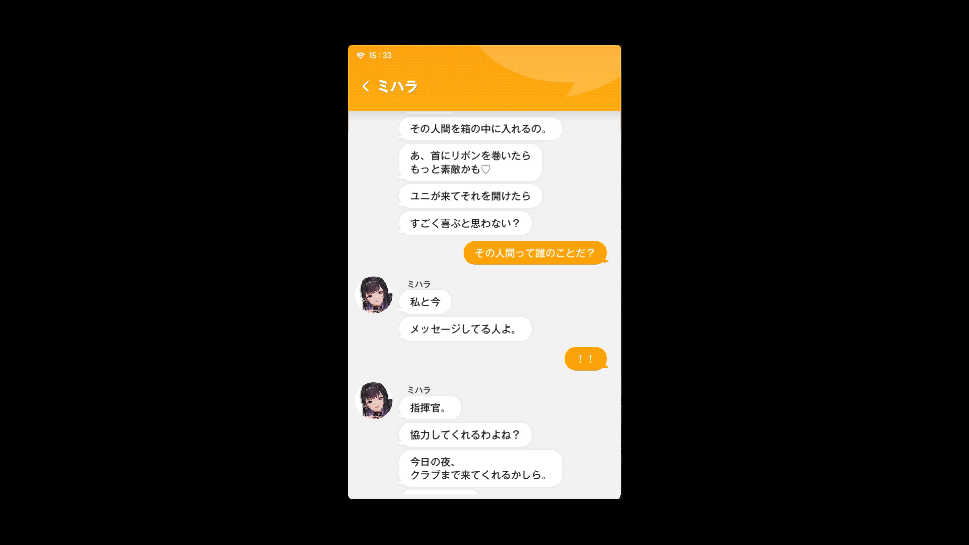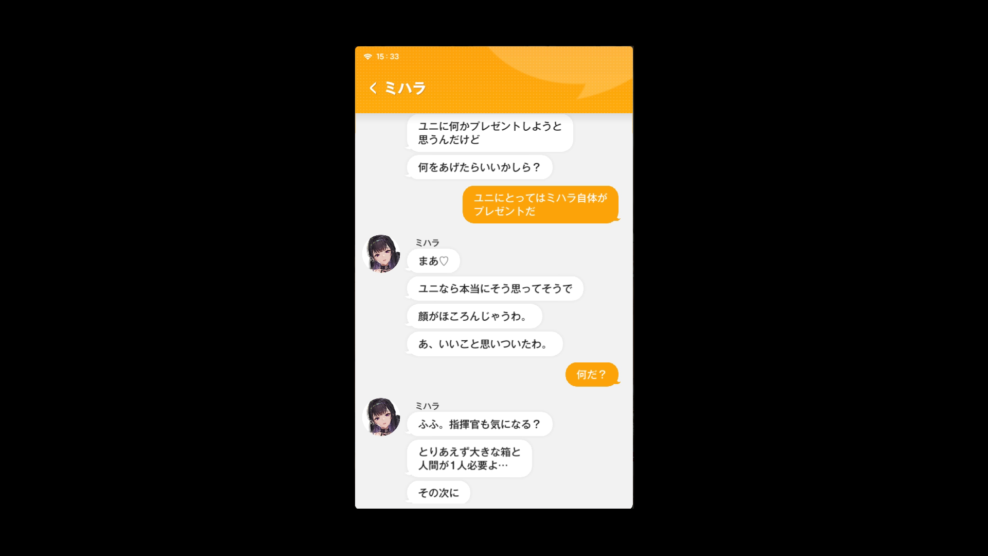 ・以下SSのようなメッセージをやり取りした夜、どう考えても主人公は彼女達から無事に逃げられたとは思えない → おそらく『箱を開けた途端、目を輝かせたユニが一瞬で彼にギャグボール & 首輪を装着し、瞳を♡ & よだれを垂らしながら彼を裸にひん剥いた挙句、愛用の鞭で調教を開始』してたっぷり大人の遊びを堪能したのだろう(ミハラblablaより)