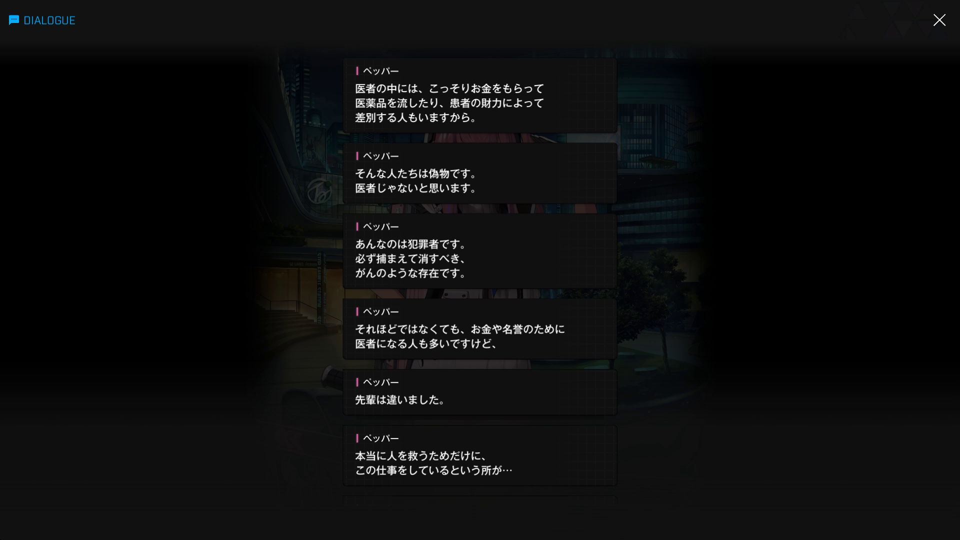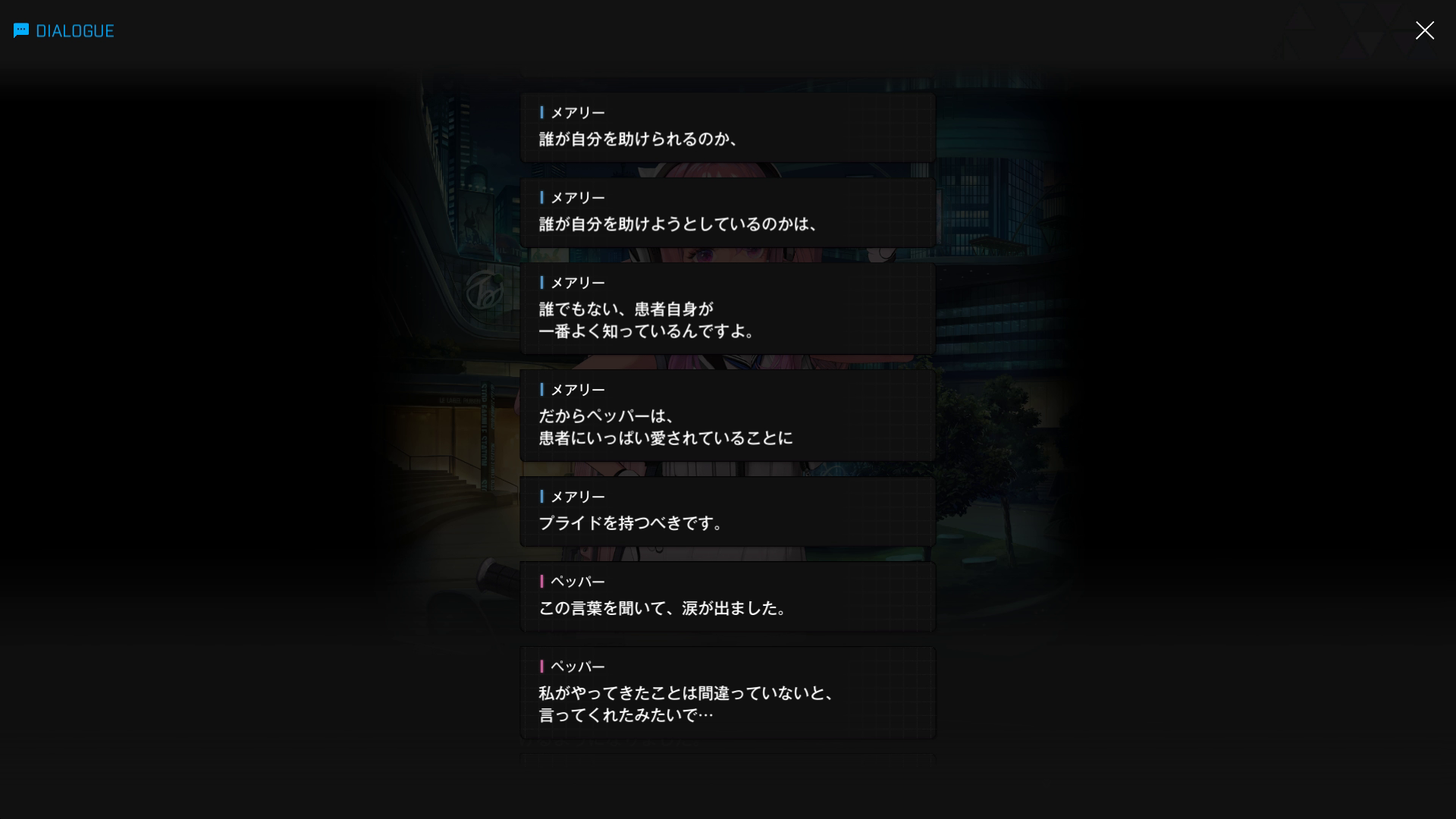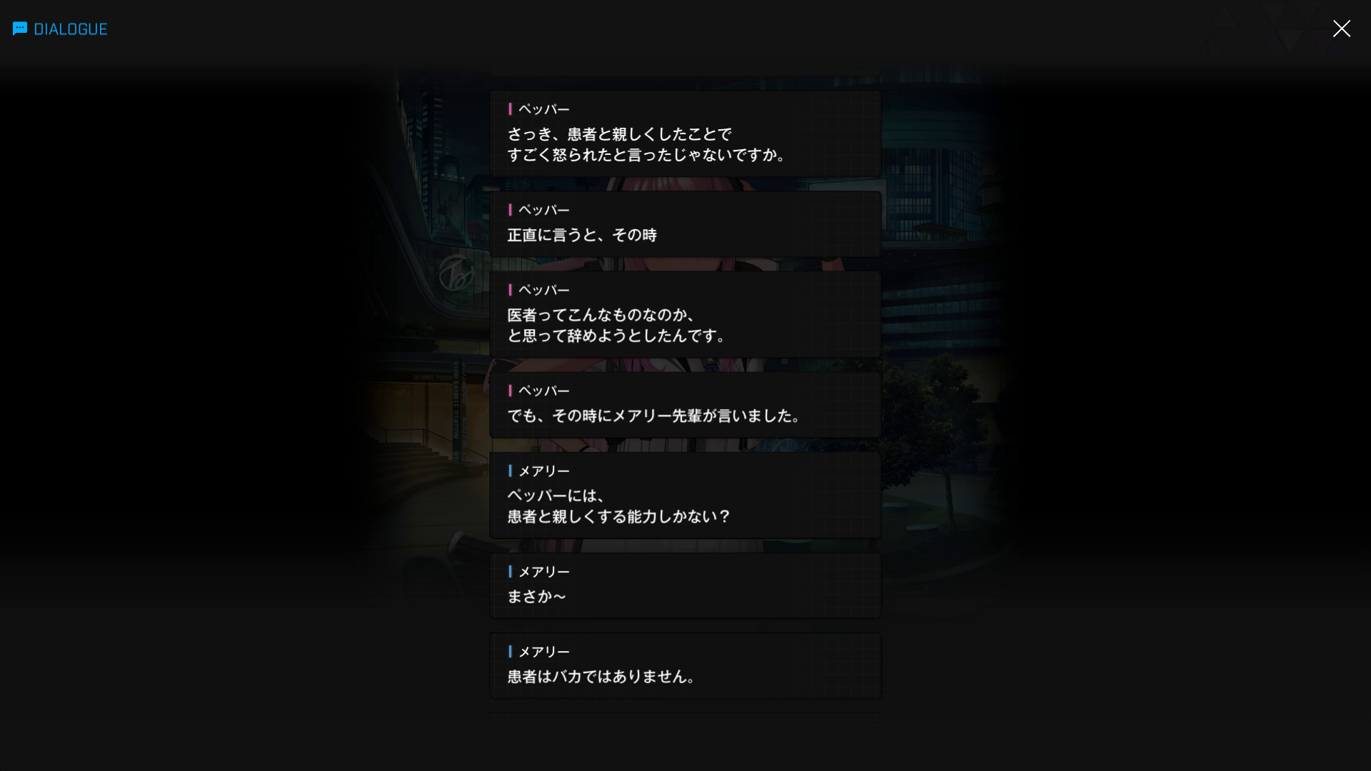 ・メアリーに痛い注射を打ってもらうため、最近仮病を装って病院を訪れる患者が増えたらしい → 例え閉鎖された架空のNIKKE世界でも、人類はドM(被虐行為)という深い業に抗うことはできないようだ(ペッパー面談:04より)
