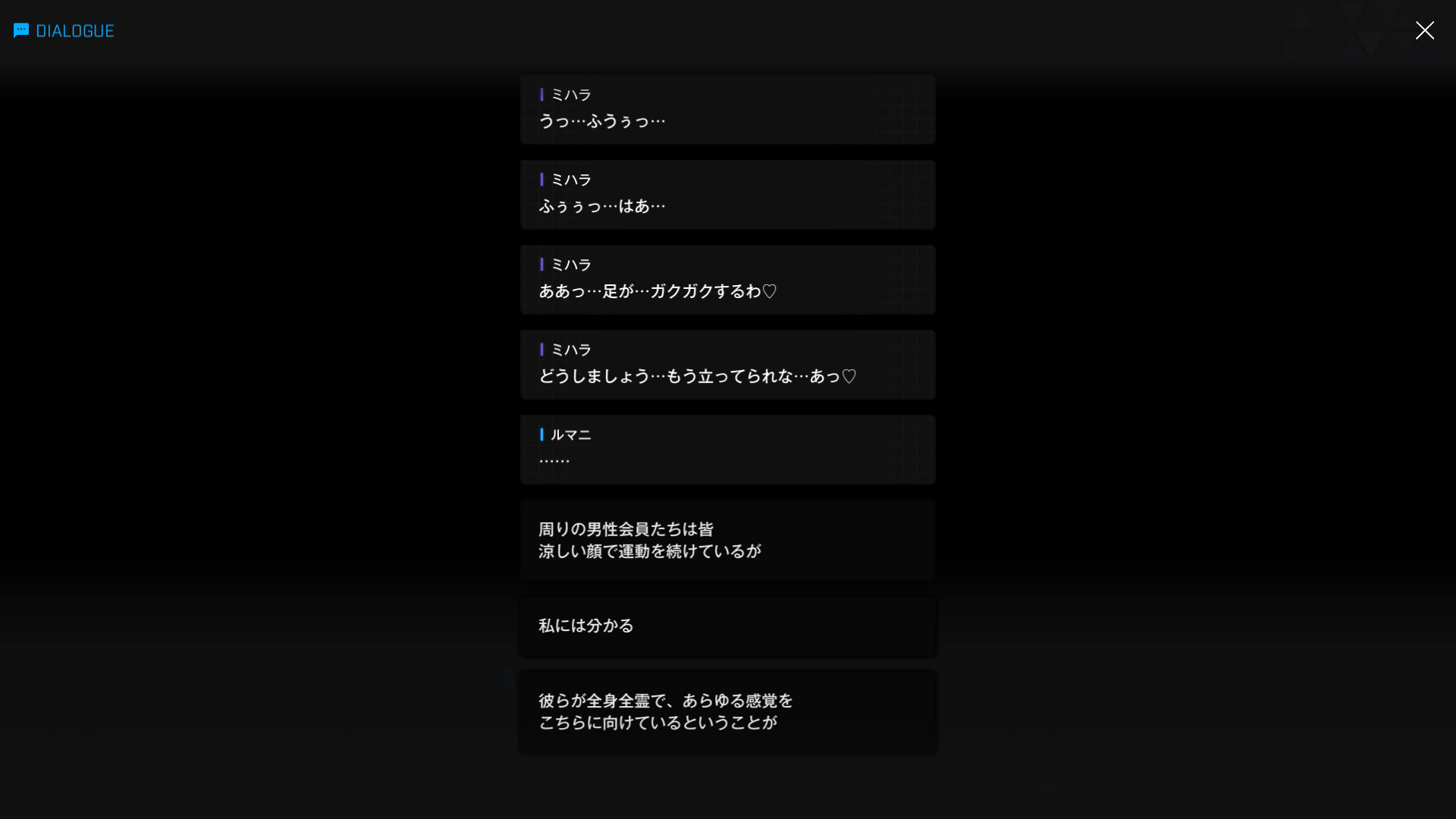 ・彼女が運動をした場合、以下SSのように男性の『とある棒』が運動の邪魔になってしまうほどの、文字どおり『妨害(棒害・某GUYなど)』行為を巻き起こしてしまい、ルマニから強制退場を命じられてしまう → 上から順にスクワット、腹筋、ランニングマシーンの様子(ミハラエピソード2より)