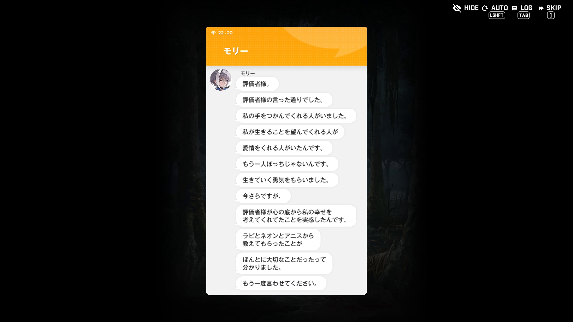 もうお気付きだろうが、モリーが主人公のことを「評価者様」と呼ぶ理由は、彼が評価者制度でモリーを登録したため