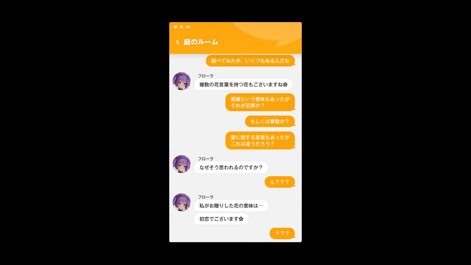 ・水以外の飲み物は苦手 → 面談ではコーヒーがダメだったため、おそらくトリナ同様、オレンジジュース & 栄養ドリンクの類もアウトなのだろう(フローラ面談:08より)