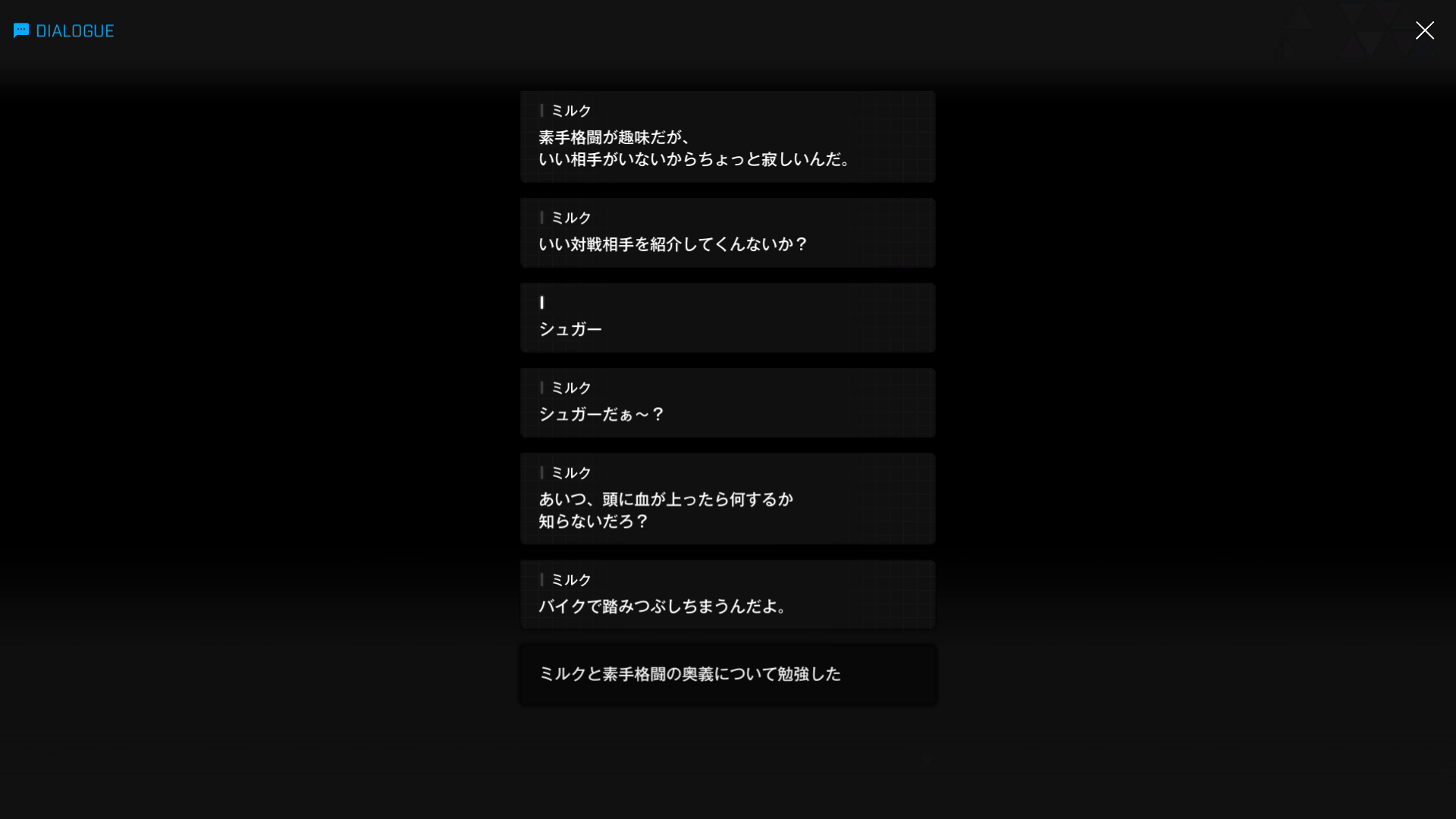 ・リズム感がなくてダンスが下手(いくら練習しても上手くいかない)と自覚しているものの、主人公と会話しながら片手でミルクの練習メニューをタブレットに詳しく書き込むような器用さも持ち合わせている → 本人曰く「身体と心が別々に動いちゃう」とはいえ、誰にでも簡単にできる芸当ではなく、特殊能力と言ってもいいレベル(心機一転より)