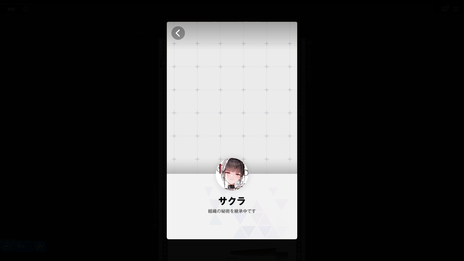 ・清明会の先代当主だった父の跡を継ぎ、現当主となる → アークの技術でも治療不可能な病を患った父が他界した日、生まれ育った世界を守る手段として、懐に忍ばせていた刀を自ら胸に刺して死亡 & ニケ化により邪魔者達の排除に成功(イベント『Beauty Full Shot』より)