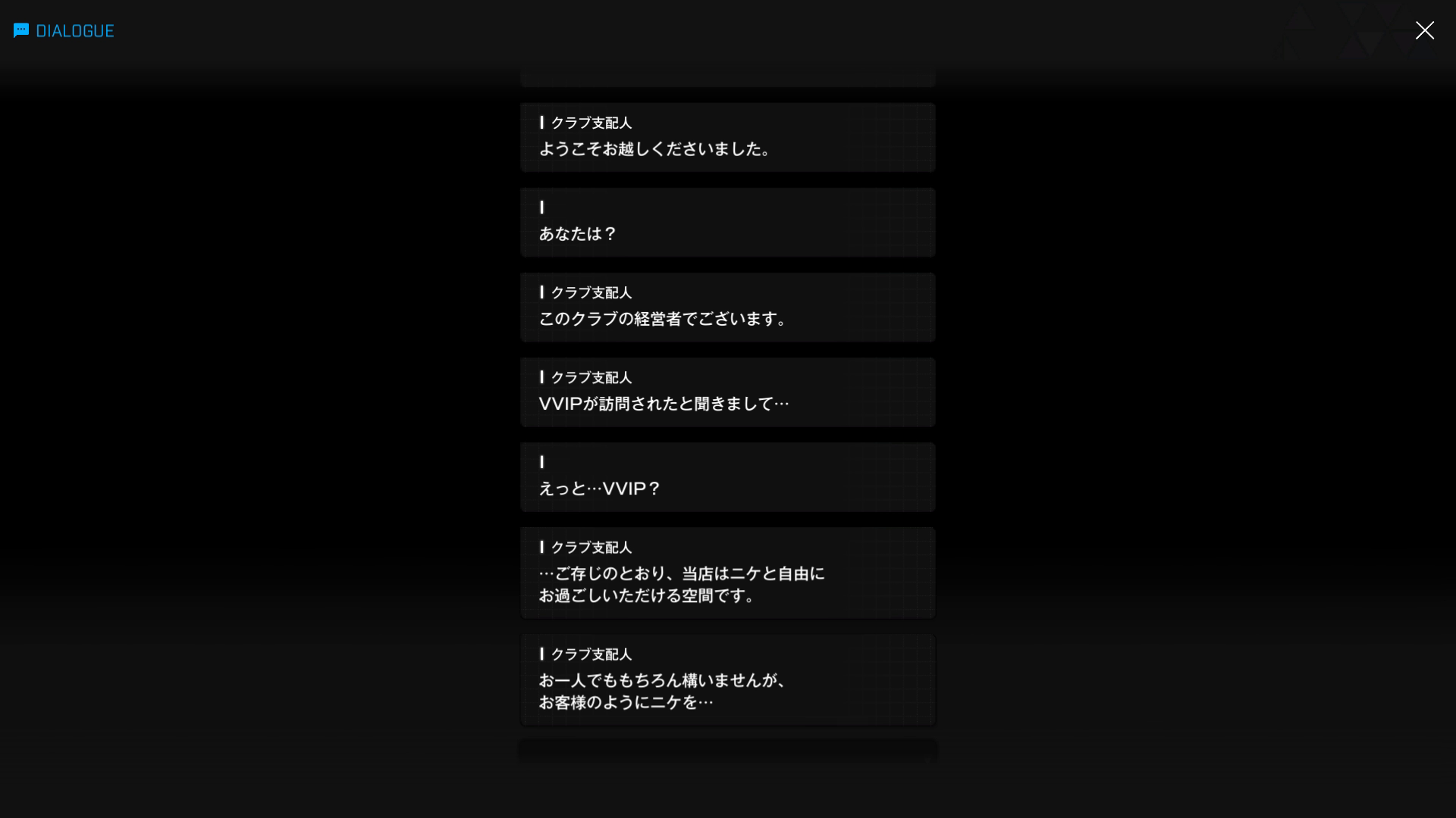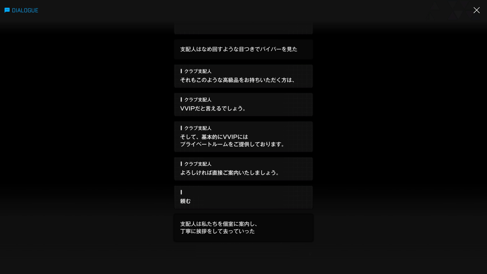 ・こちらで述べているニケフィリアクラブに入店以降、初読時だと全選択肢を読み返さないとよくわからない部分があるため、管理人がSSを交えて話の流れを解説しておく(バイパーエピソード3 & 4より)