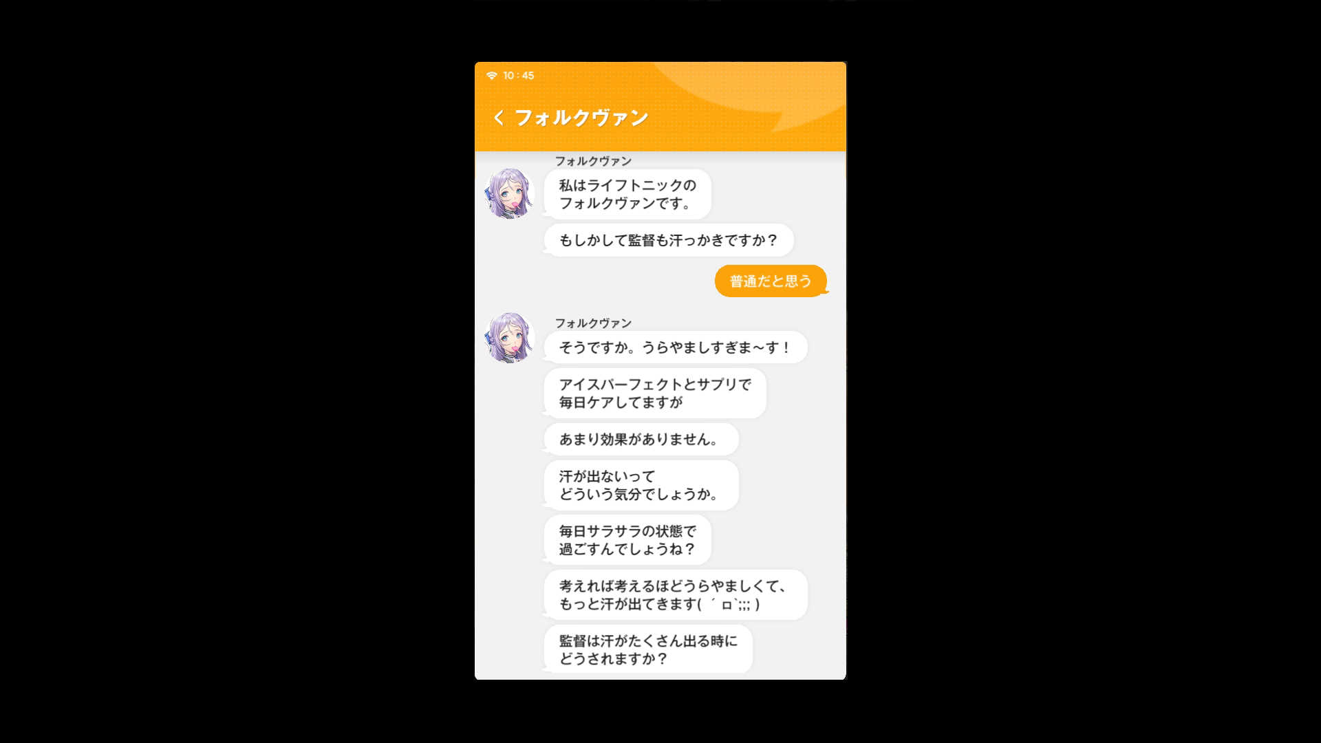 ・ユニは以下SSのように述べているが、フォルクヴァンからすれば、主人公は「冷たくて抱きしめるにはちょうどいい」体温らしい → 一応念のためとりあえず誤解のないようにお伝えしておくが、彼のち〇こでイケナイ行為をしているわけではないため、くれぐれも注意されたし(フォルクヴァン面談:01 & CHAPTER.04『歪んだ歯車』より)