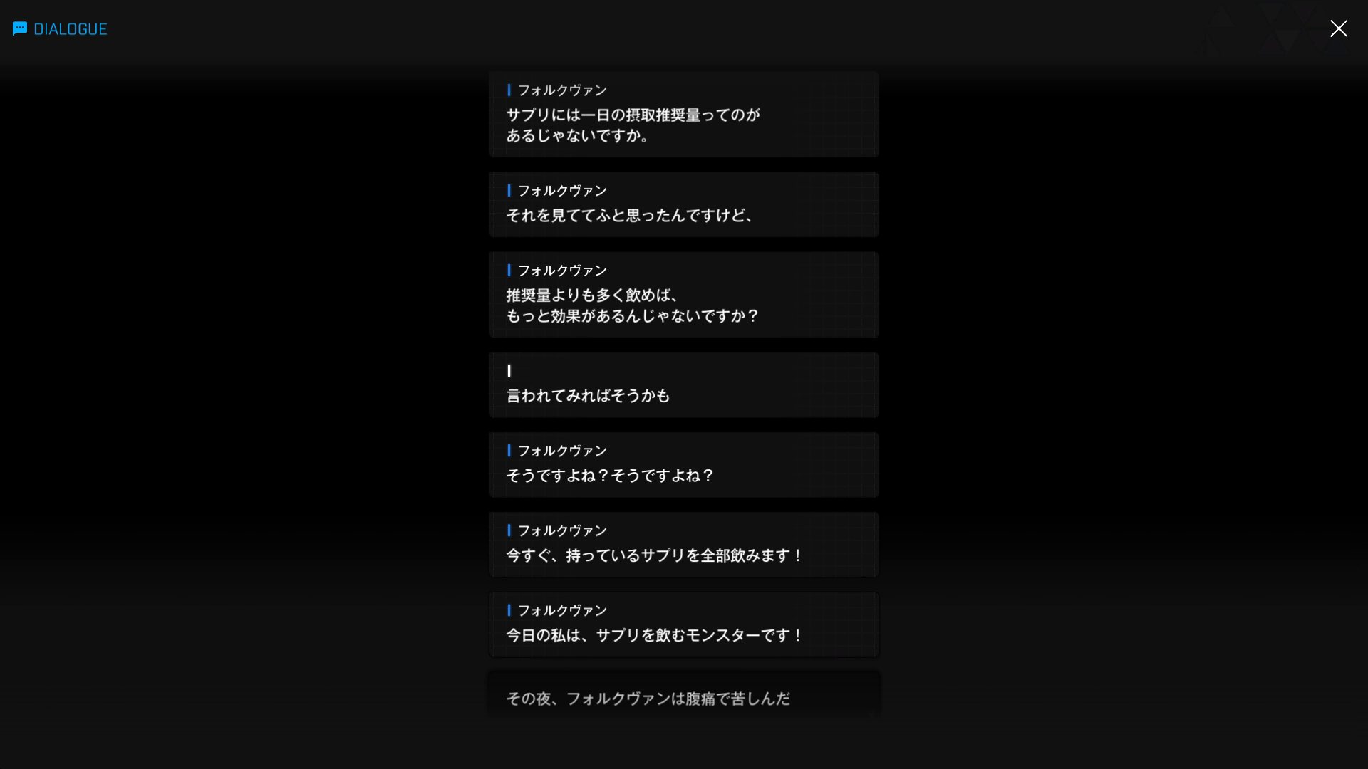・基本的に彼女が「〇〇な気がします」&「〇〇に違いありません」のような発言をした場合、逆に受け取った方が正解 or 一般的な考えになることが多い(フォルクヴァンエピソードなど)