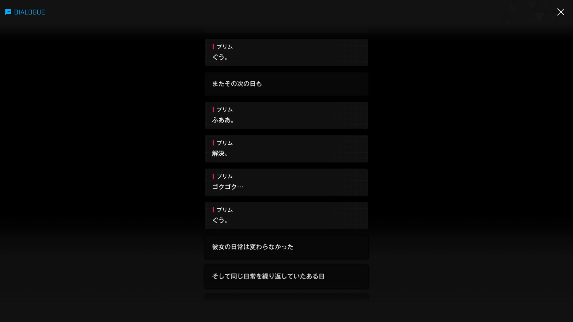 ・宝ものイベントで既出かもしれないが、テキパキとの会話中、所かまわずよく寝ている理由が明かされる → 元々舌足らずのため、『本編の言葉(時制など)が全て正しい』&『語尾などから管理人が推測を交えて考察』した上で簡単にまとめると、『人間だった頃 or ニケ化以降の某時点(過去)に、何かしようとしても全部周囲に悪影響を与えてしまうため、全てを諦めて寝るようになった』らしい(イベント『BOOM!THE GHOST!』より)