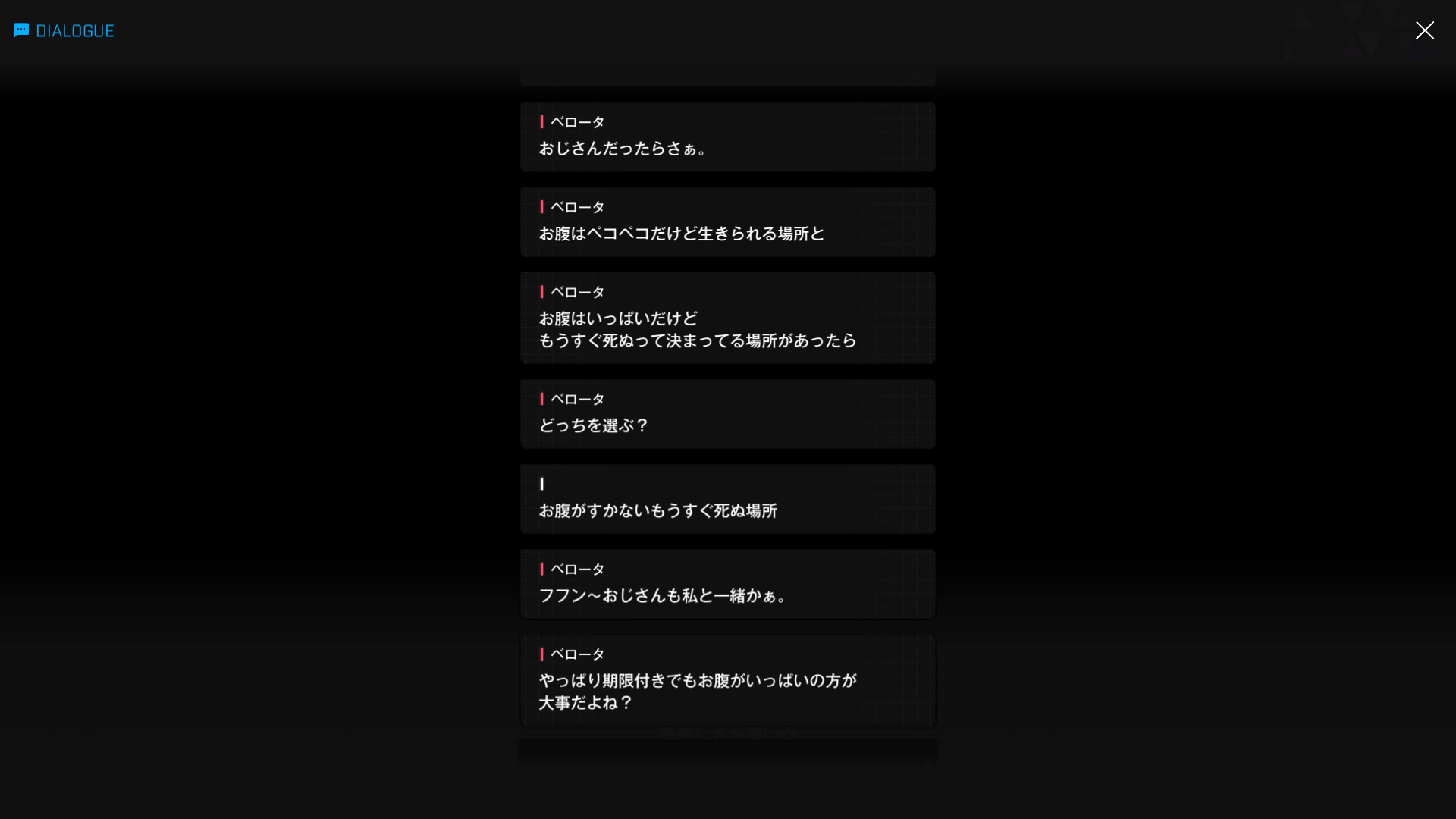 ・以下SSの内容も、上述のイベント『NEVERLAND』に関連した話となっている(ベロータ面談:08 & 11より)