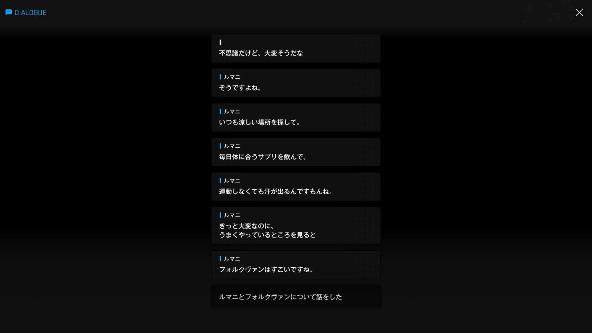 ・主人公を特殊な名称で呼ぶニケの多くは、主にblablaなどでその理由が説明されるものの、彼女のように何の説明もなくいきなり会話がスタートすることも(フォルクヴァンblablaより)