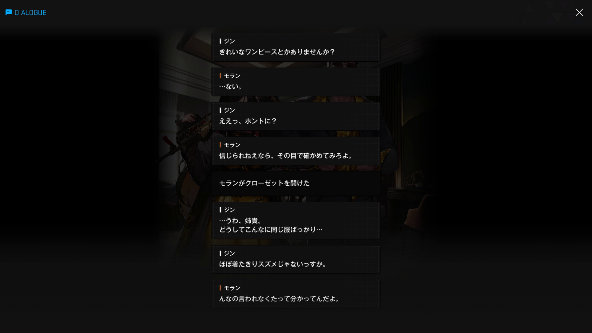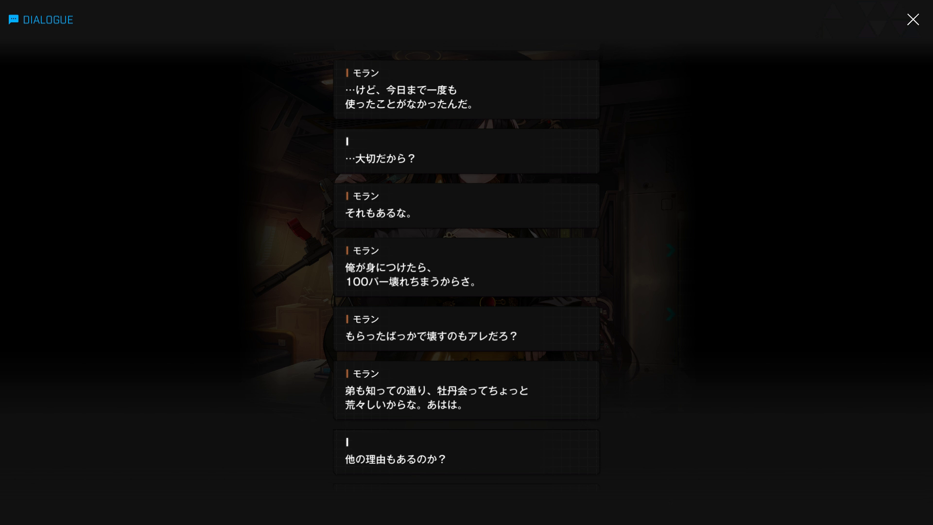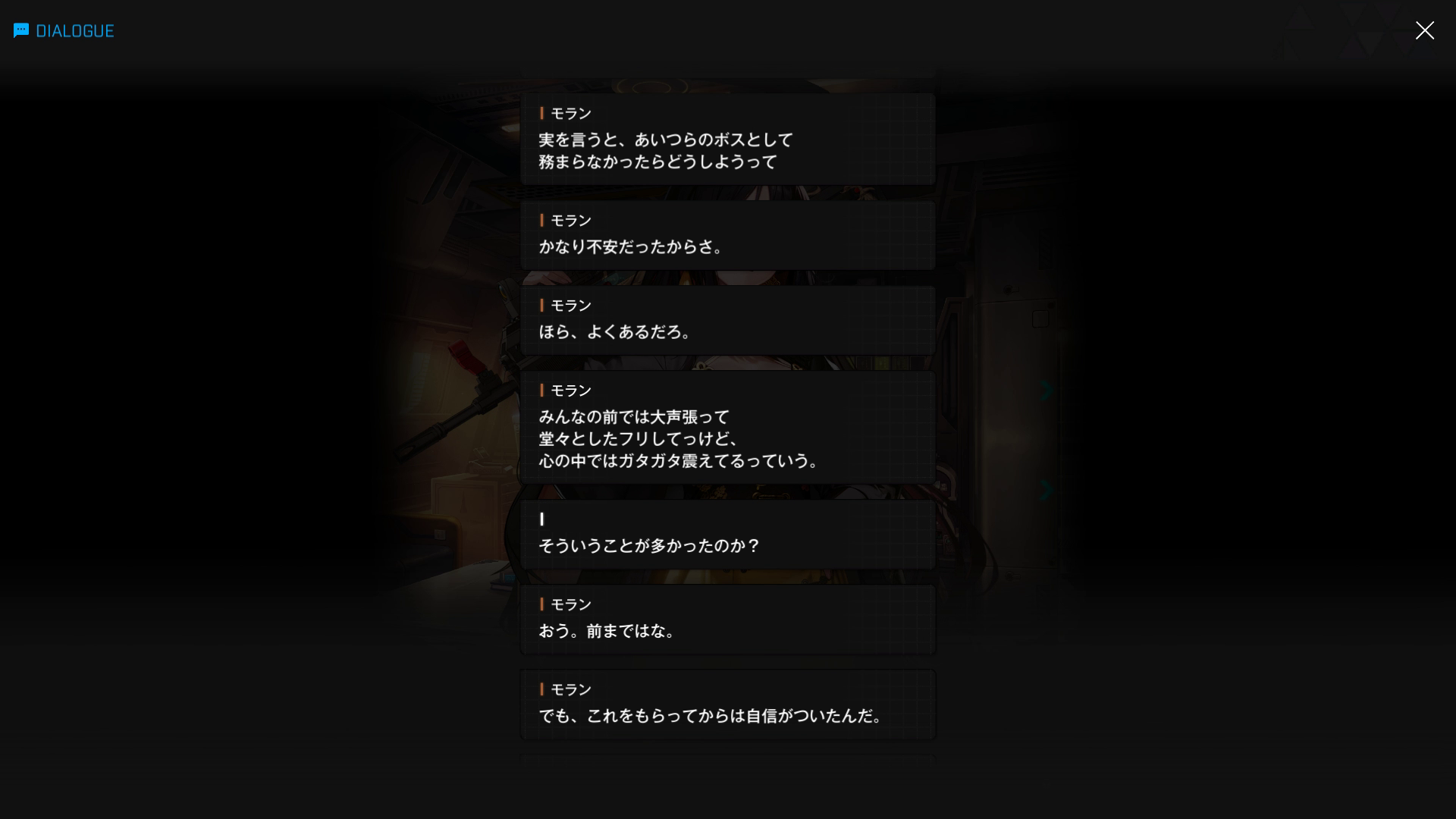 ・彼女にとって『仁義』とは、「人生で一番大事なこと & 侠客として生きるための根源」に相当するとのこと → 理由は「それを取ったらただの屍」だから(モラン面談:02より)