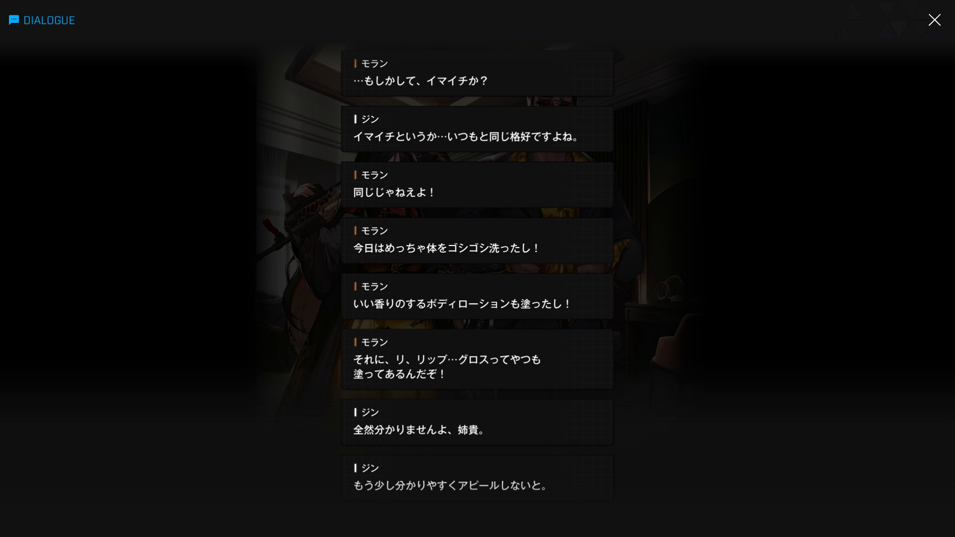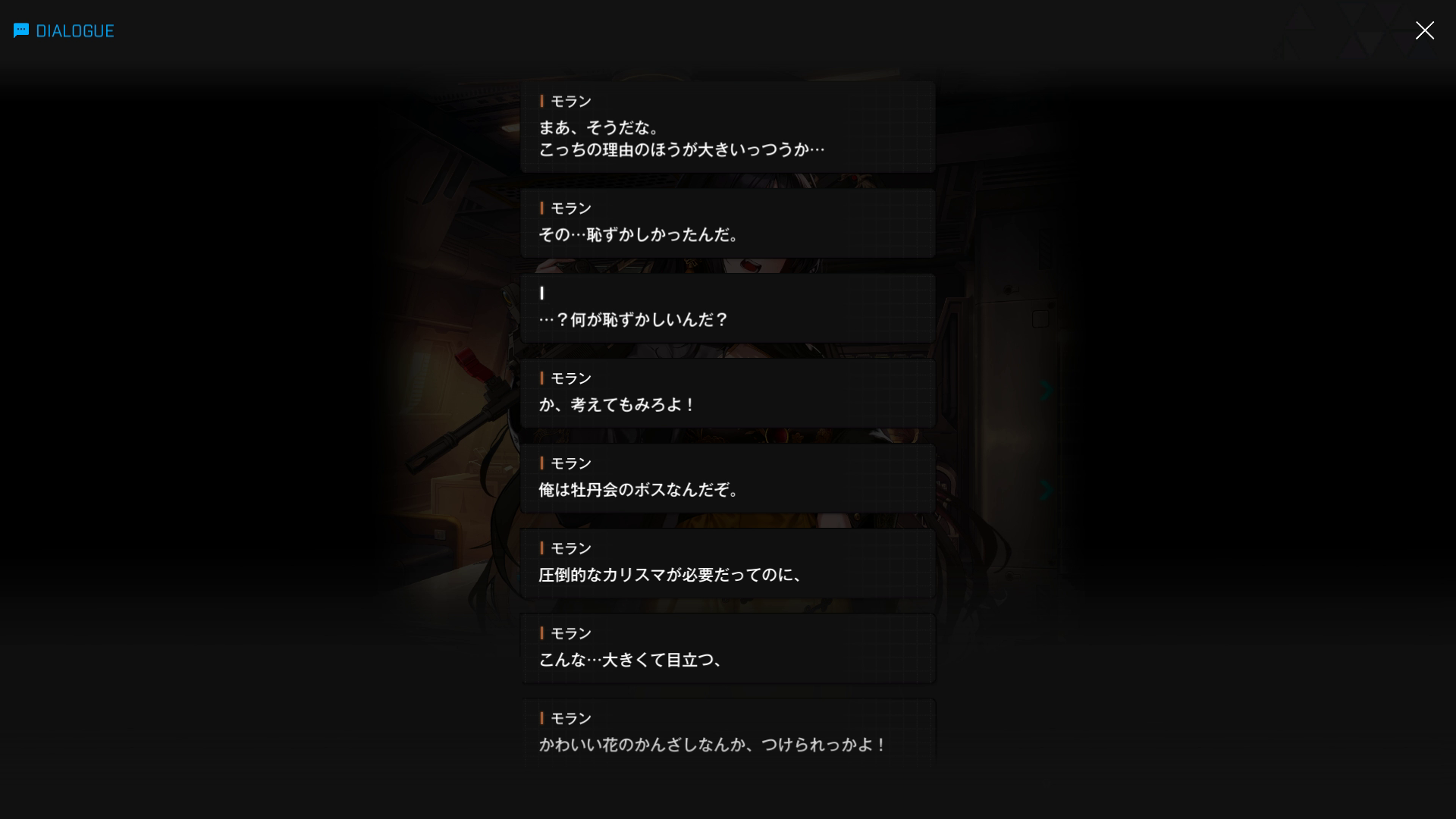 ・サクラから見れば、モランは以下SSのように映っているらしい(イベント『Cherry Blossom』の『花の騒ぎ:A』より)