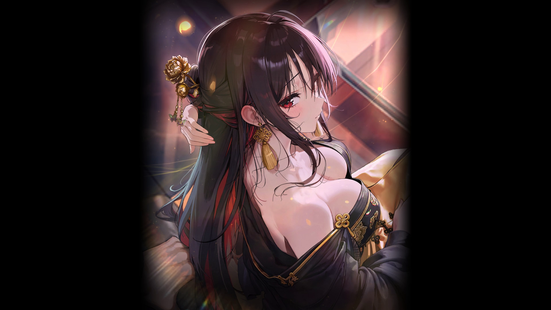 ・ちなみに、主人公が彼女に代わって髪を整えるなどした際、かんざしを挿した状態のアップSSが登場するため以下に掲載しておく → ⋯⋯ちょっとそこのアナタ、約115cm & Jカップの巨乳をガン見するんじゃありません!(詳細はこちら)